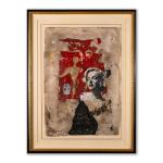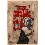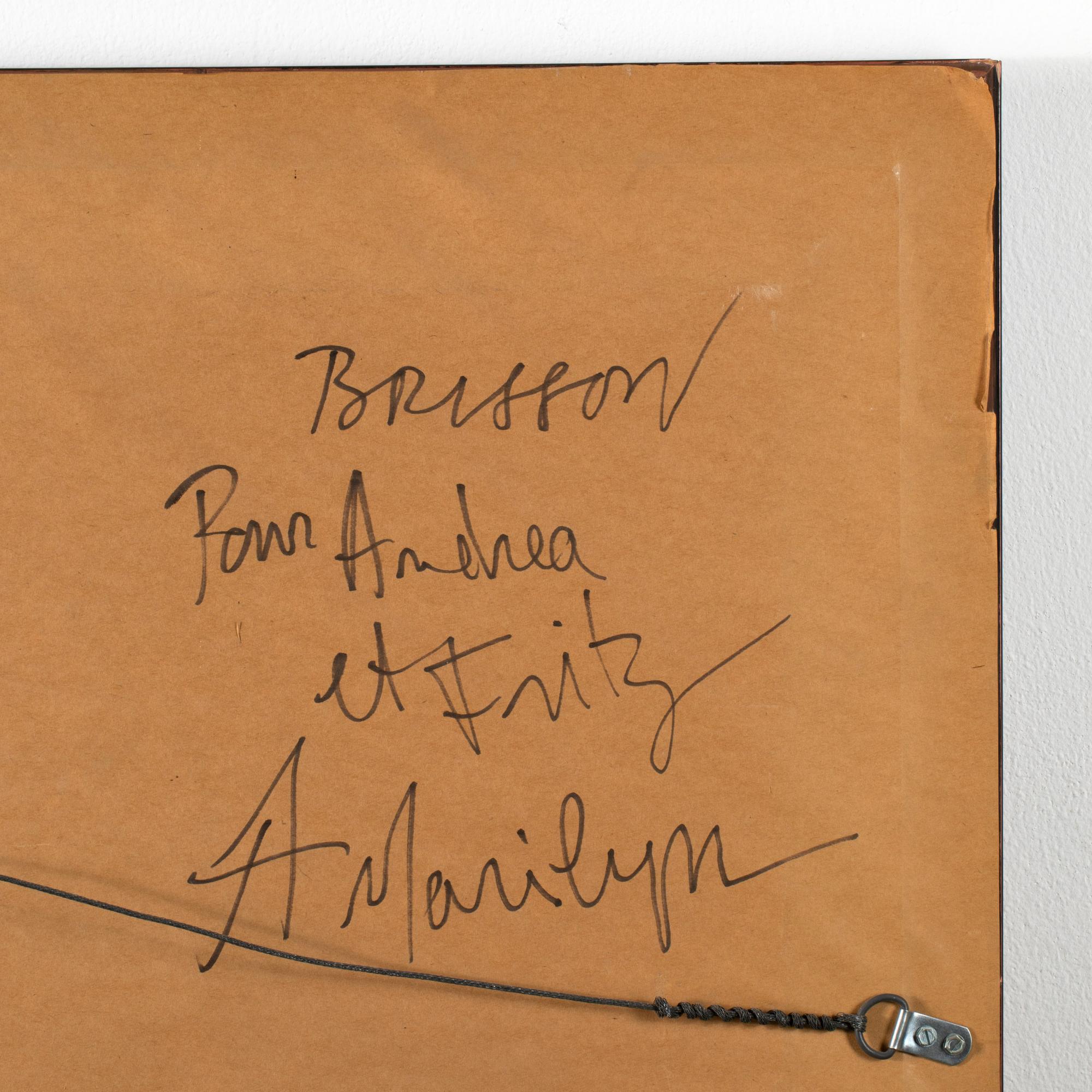 Callage, Mischtechnik auf Bütten. 88,5 x 61 cm. Unten links signiert: BRISSON (schwarzer Faserstift), verso auf einem Klebeetikett u.a. betitelt: Passionnante Marilyn sowie Widmung auf der Rückwand: Brisson Pour Andrea et Fritz A Marilyn (schwarzer Faserstift). Unter Glas im Passepartout gerahmt und so beschrieben.
