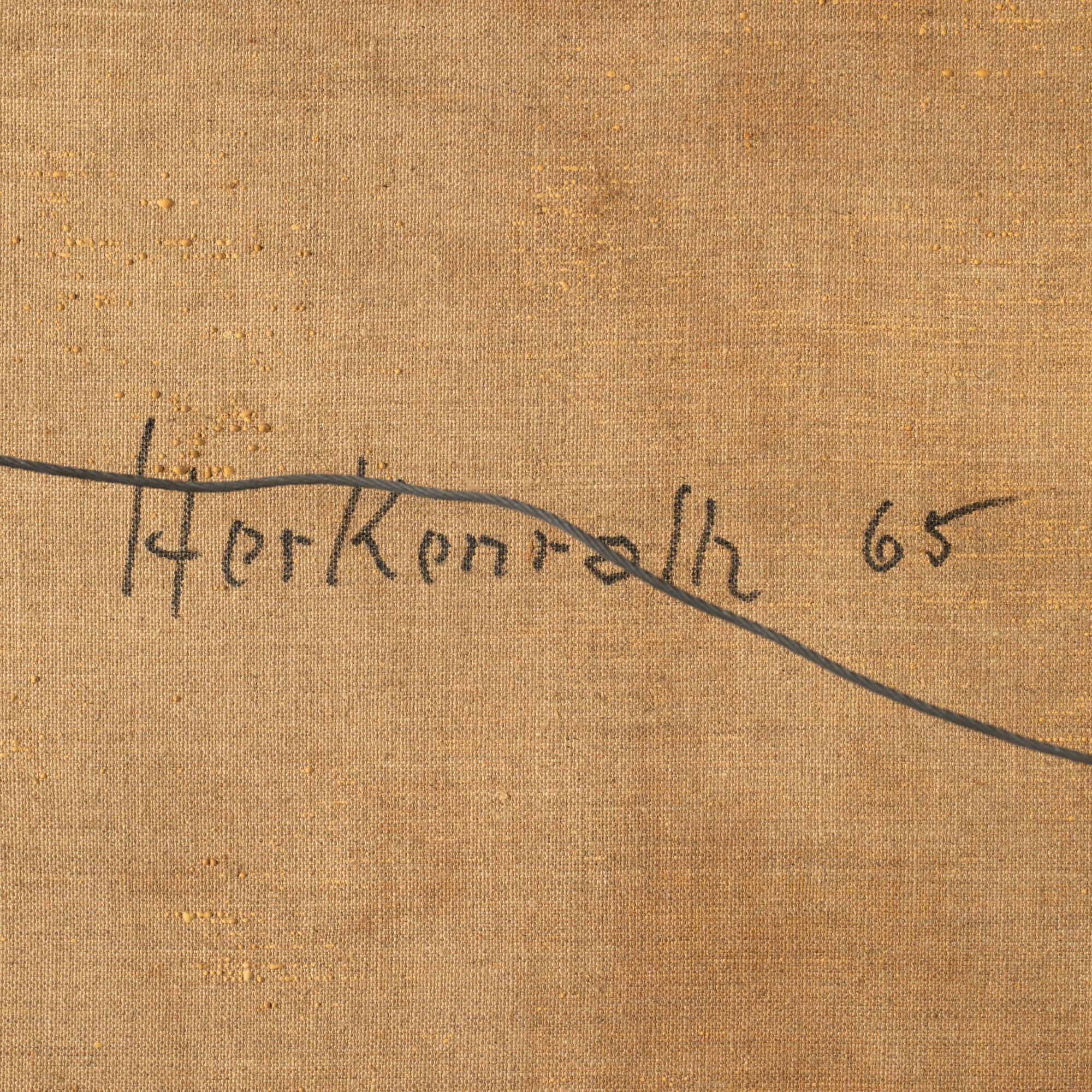 Öl auf Leindwand. 120,2 x 90,2 cm. Recto unten rechts mit schwarzem Faserstift signiert: Herkenrath. Verso auf Leinwand signiert und datiert 'Herkenrath 65'