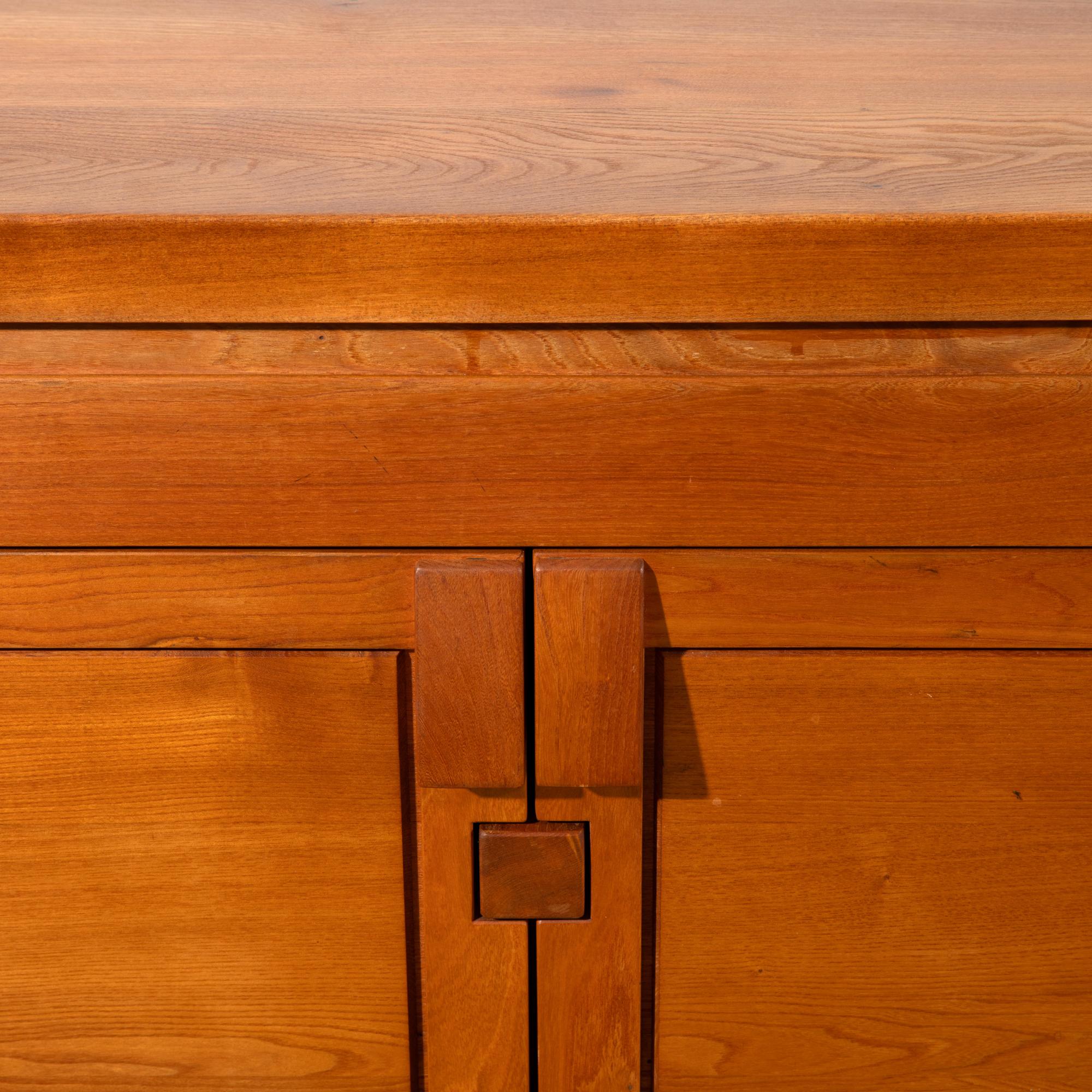 Entwurf um 1964. Ausführung in massivem Ulmenholz / Rüster. 84 x 182,5 x 53,5 cm.