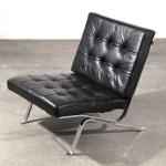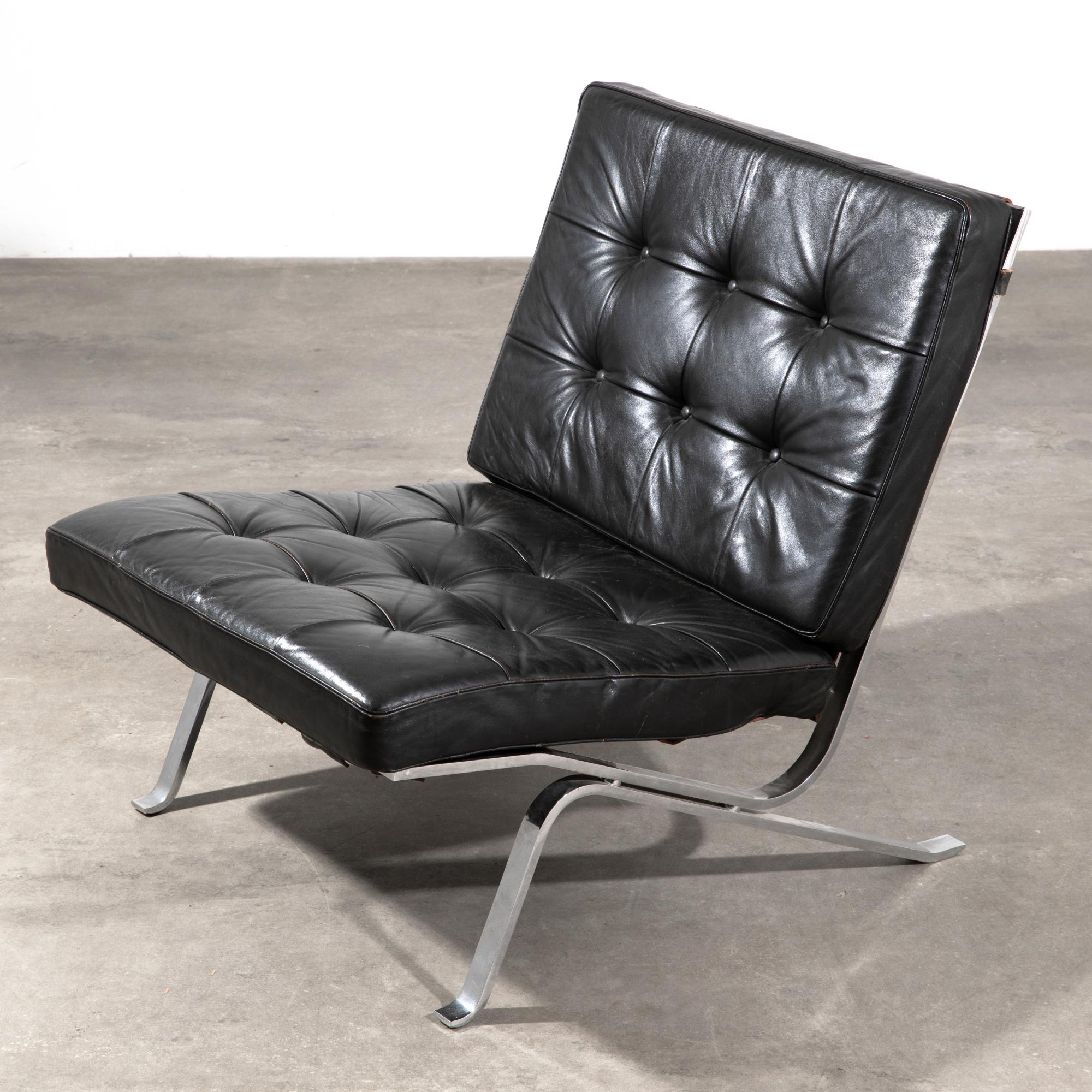 Entwurf 1954. Ausführung de Sede. Verchromter Flachstahl, Lederbänder, kapitoniertes Leder. 75 x 65 x 86 cm.