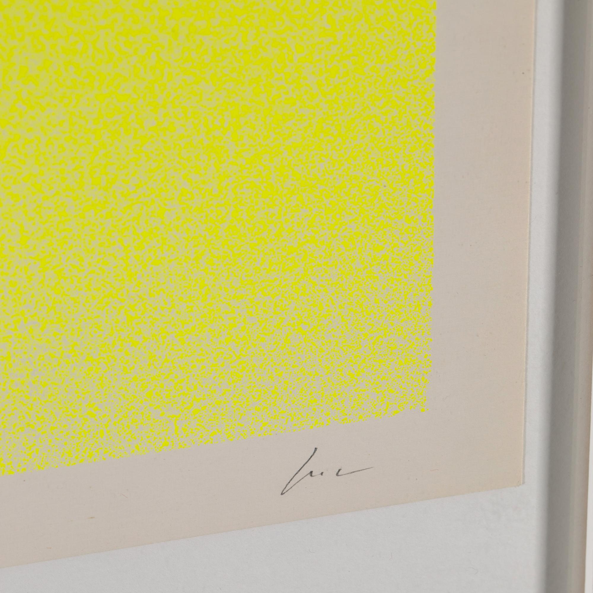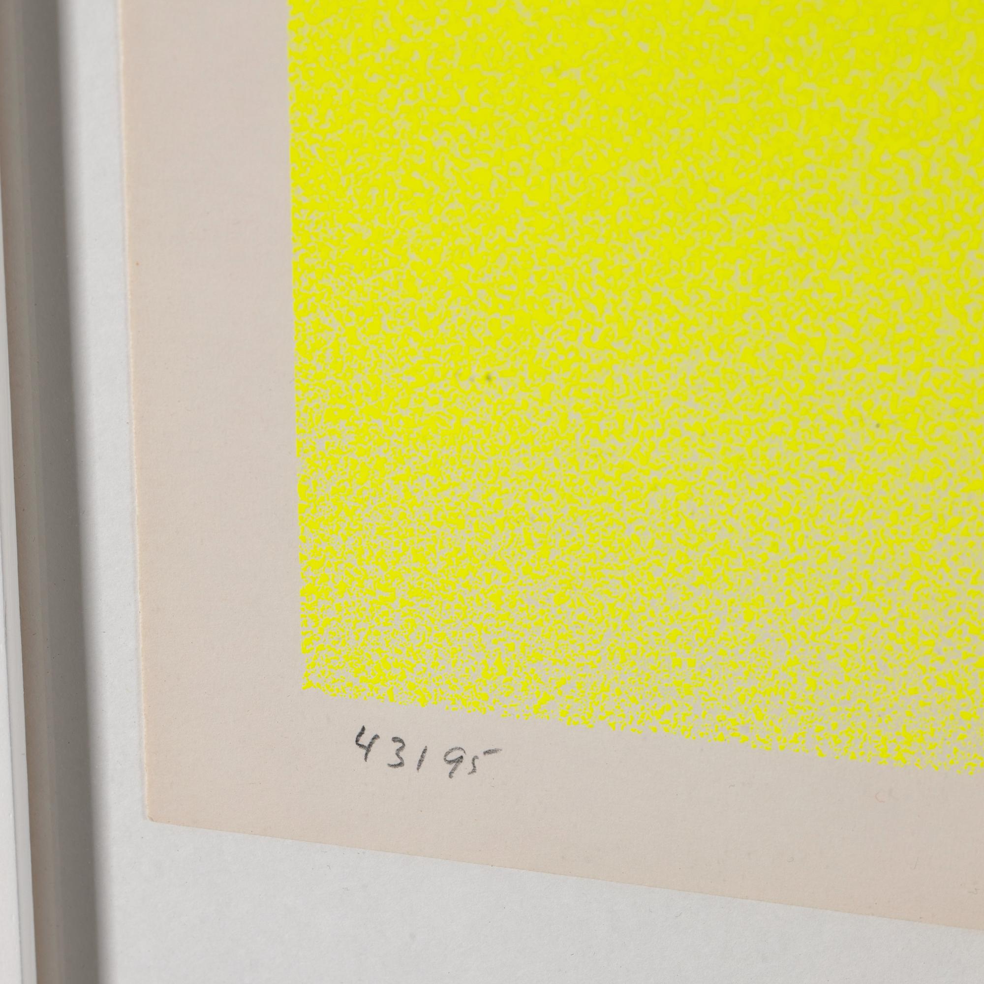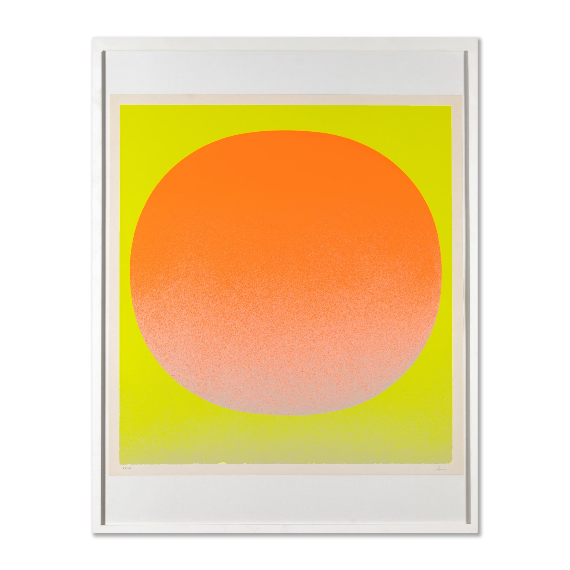 Farbseriegraphie auf Karton. 71 x 66 cm. Unten links nummeriert und rechts signiert: 43/95. Erschienen im Verlag der Galerie Der Spiegel in Köln als Blatt 6 der Folge 'Colour in the Round'. Druck: Hans Peter Haas, Echterdingen bei Stuttgart. Hinter Glas gerahmt und so beschrieben.