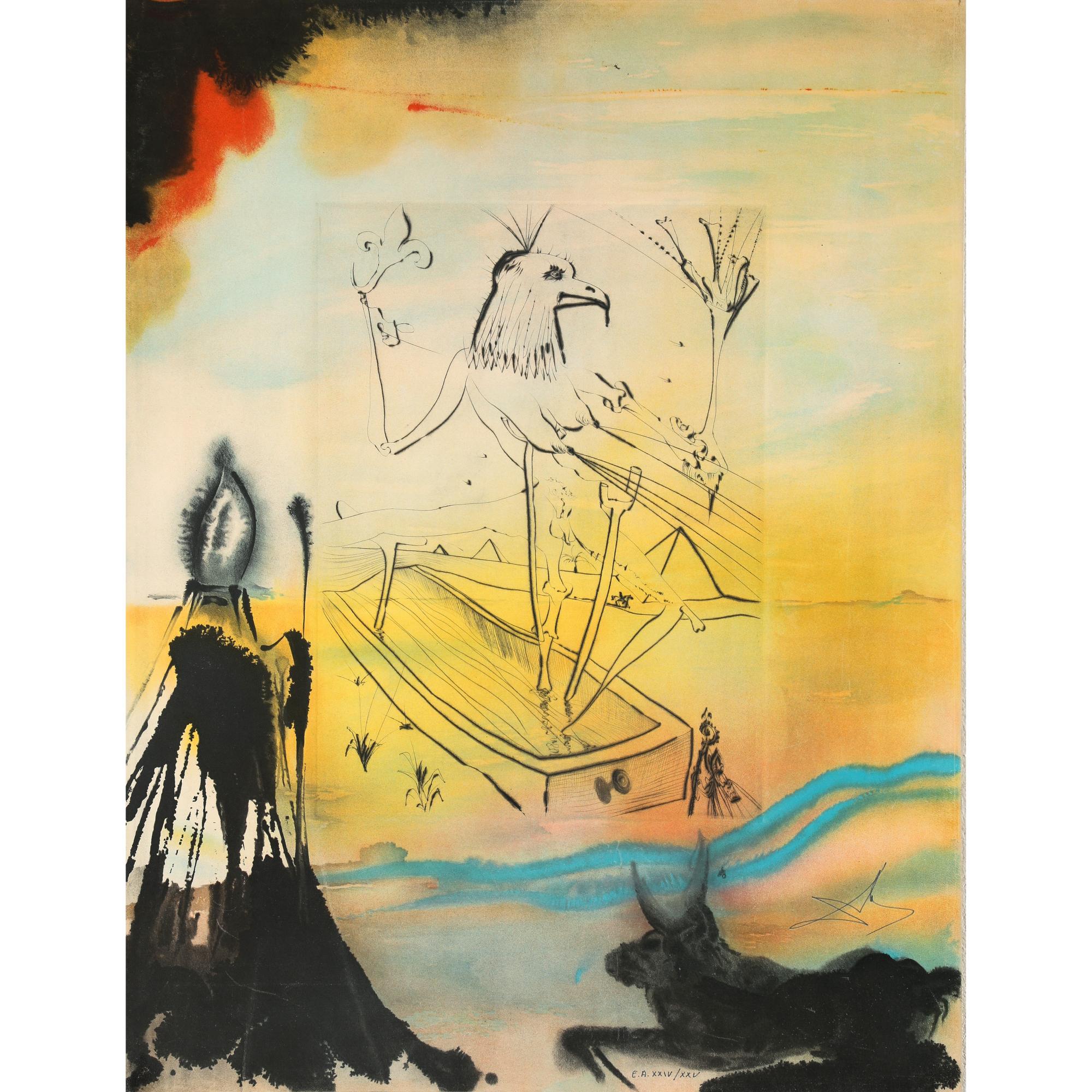 Auf Schafleder gedruckte Lithographie. Nr. XXIV von 25 Künstler-Exemplaren aus der Gesamtauflage von 250. Auf dünnem Karton aufgezogen. 65 x 60,2 cm. Lithographie mit Bleistift signiert und nummeriert: Dali E.A. XXIV/XXV.