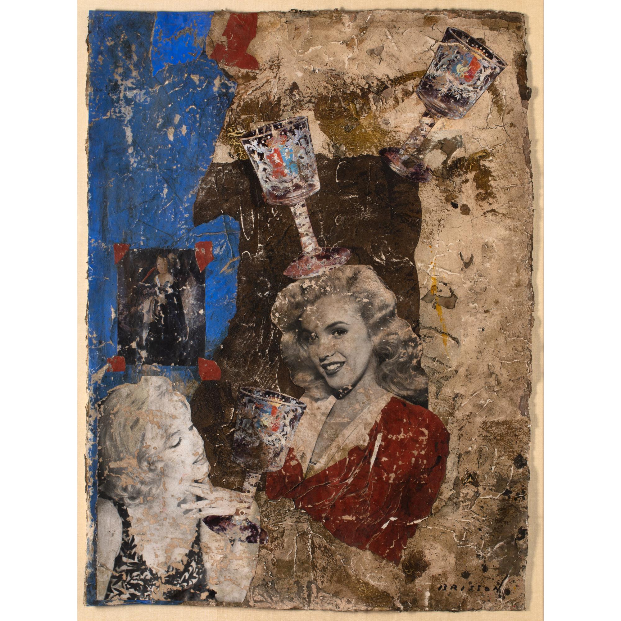 Collage, Mischtechnik auf Bütten. 74 x 55 cm. Unten rechts signiert: BRISSON (schwarzer Faserstift), verso auf einem Klebeetikett u.a. betitelt: Souxix Marilyn (schwarzer Faserstift). Unter Glas im Passepartout gerahmt und so beschrieben.