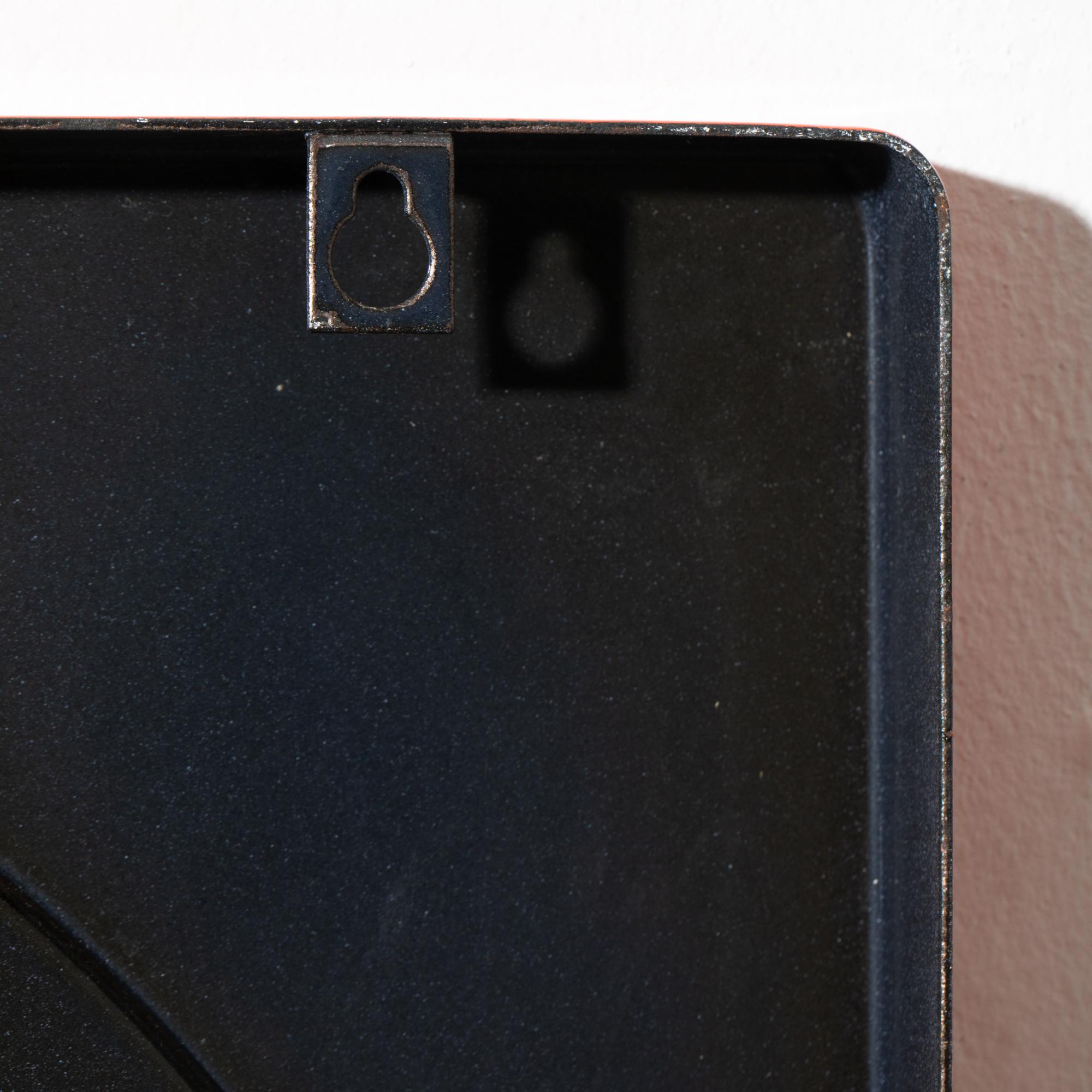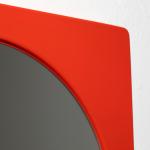 Entwurf 1971-72. Ausführung Emalco Corgémont für J. Lüber. Rot emailliertes Metall, Spiegelglas. 45 x 45 x 3 cm.