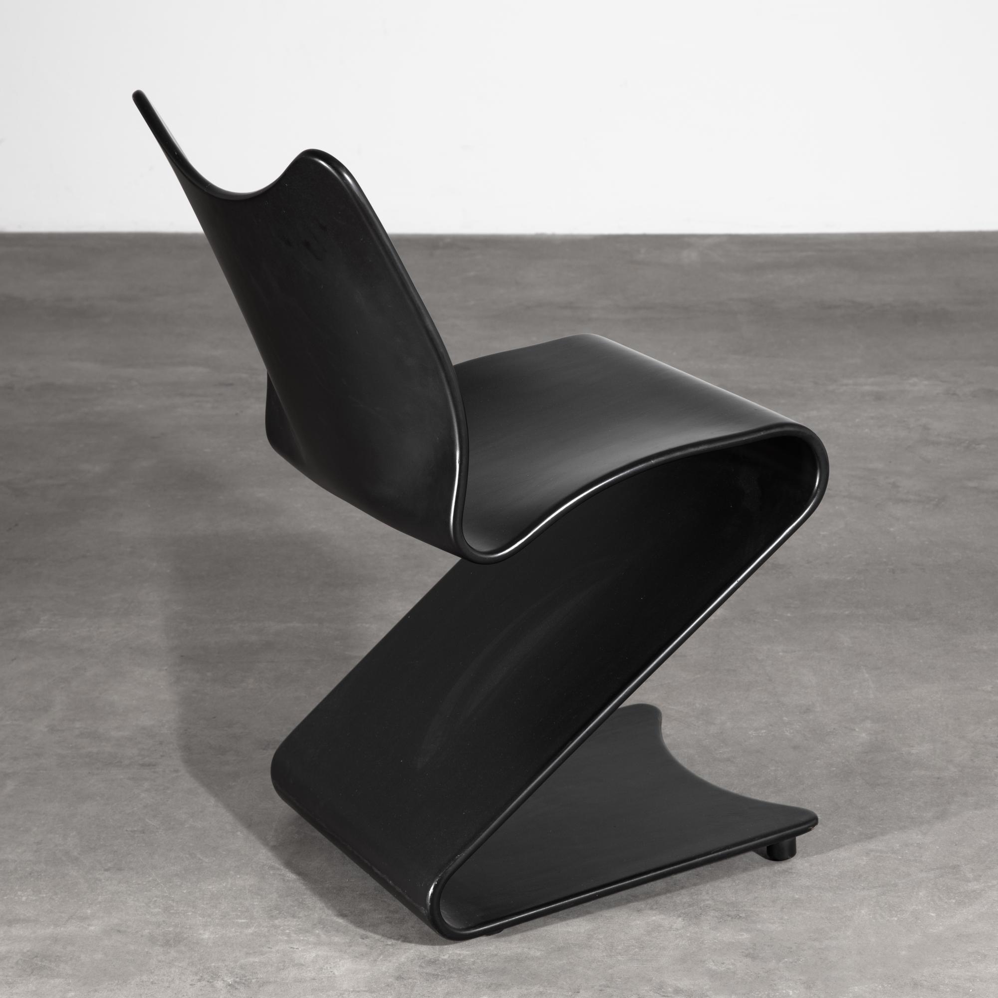 Entwurf 1956. Ausführung ab 1965 durch Sommer, Vertrieb Thonet. Schwarz lackiertes Schichtholz. 79 x 43 x 57 cm. Unterseitig mit Thonet Aufkleber bezeichnet.