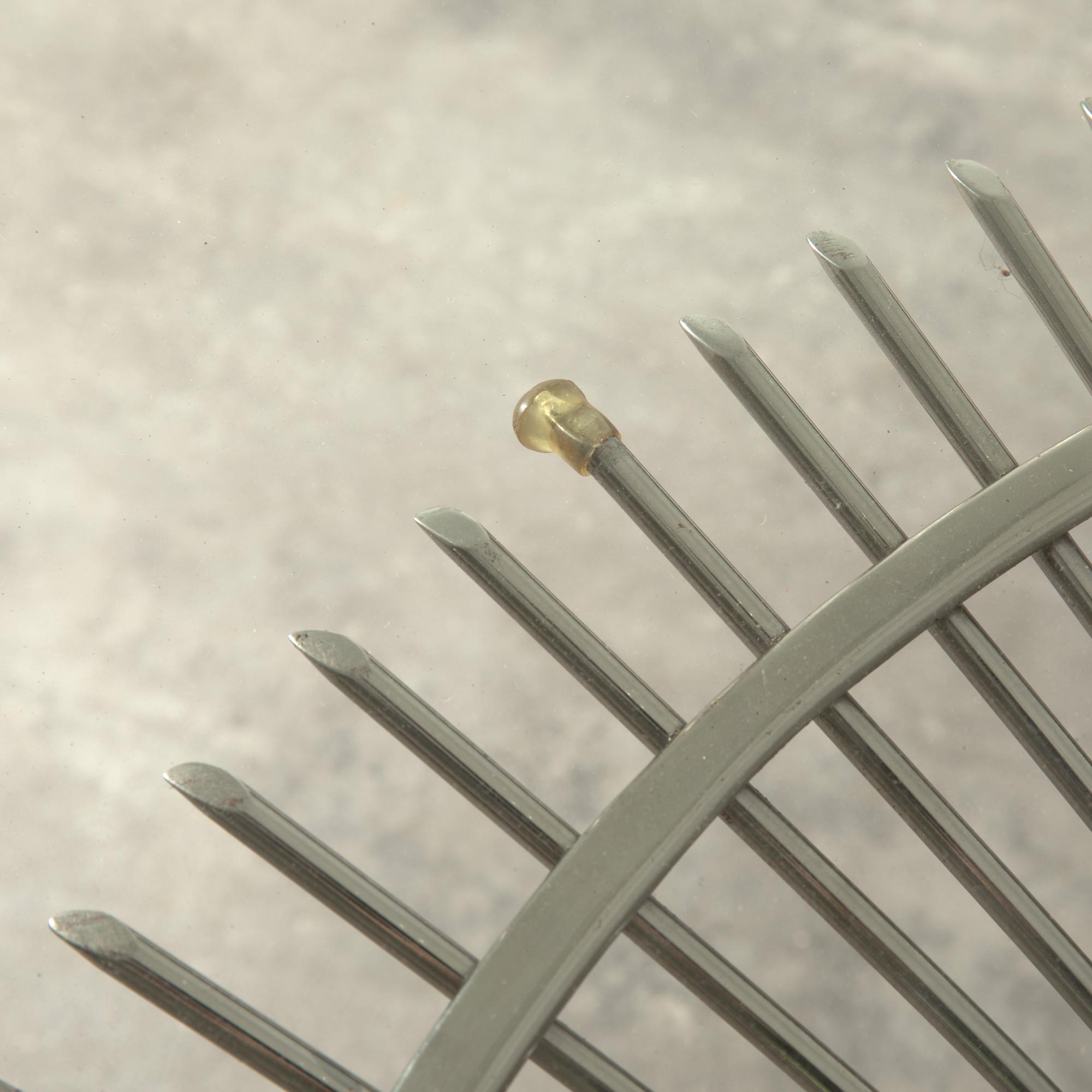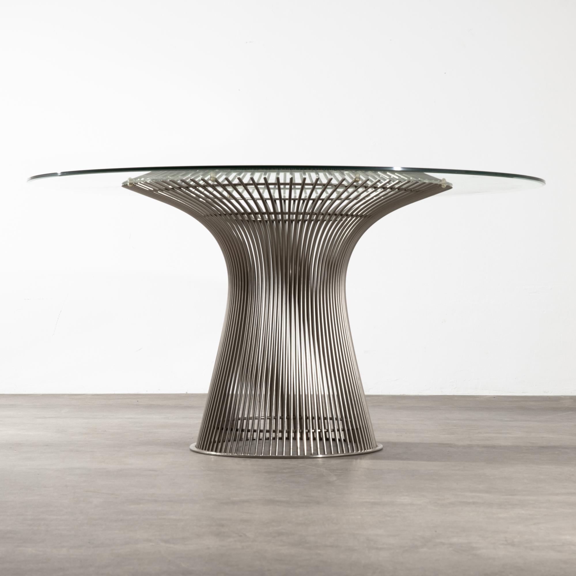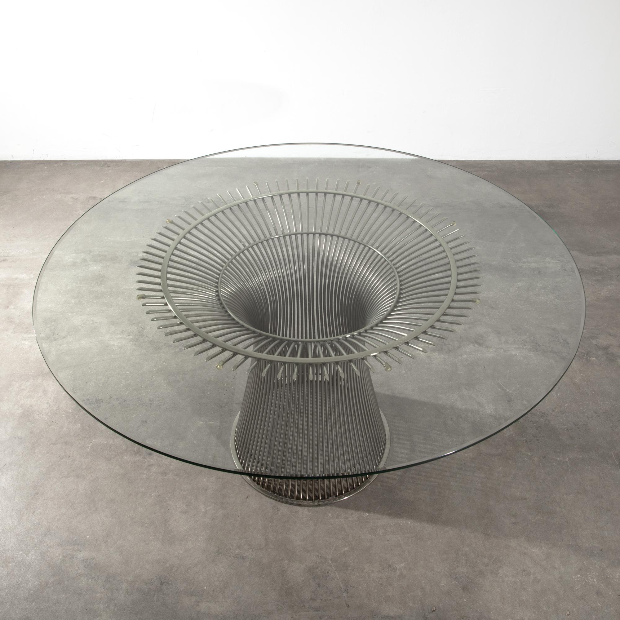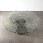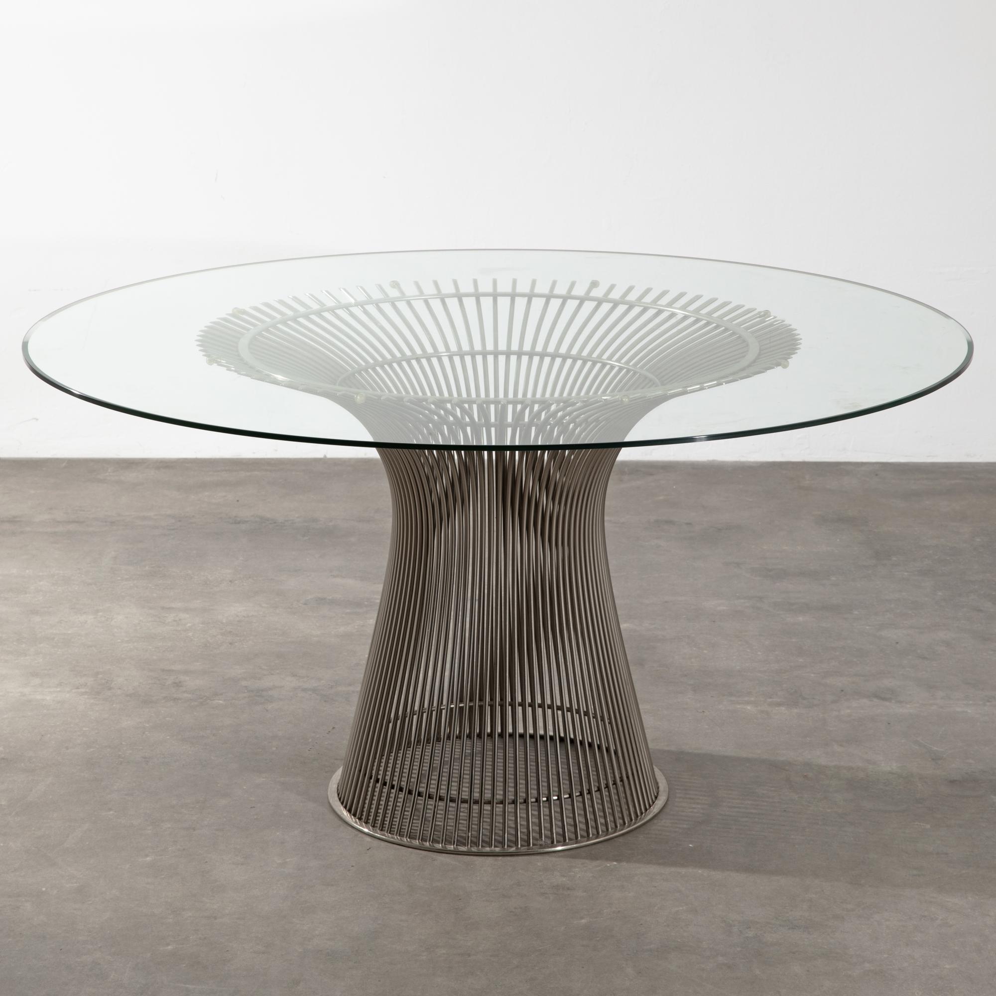 Entwurf 1966. Ausführung Knoll International. Vernickelte Rundstahlstangen, Glasplatte. H. 70 cm, D. 135 cm.