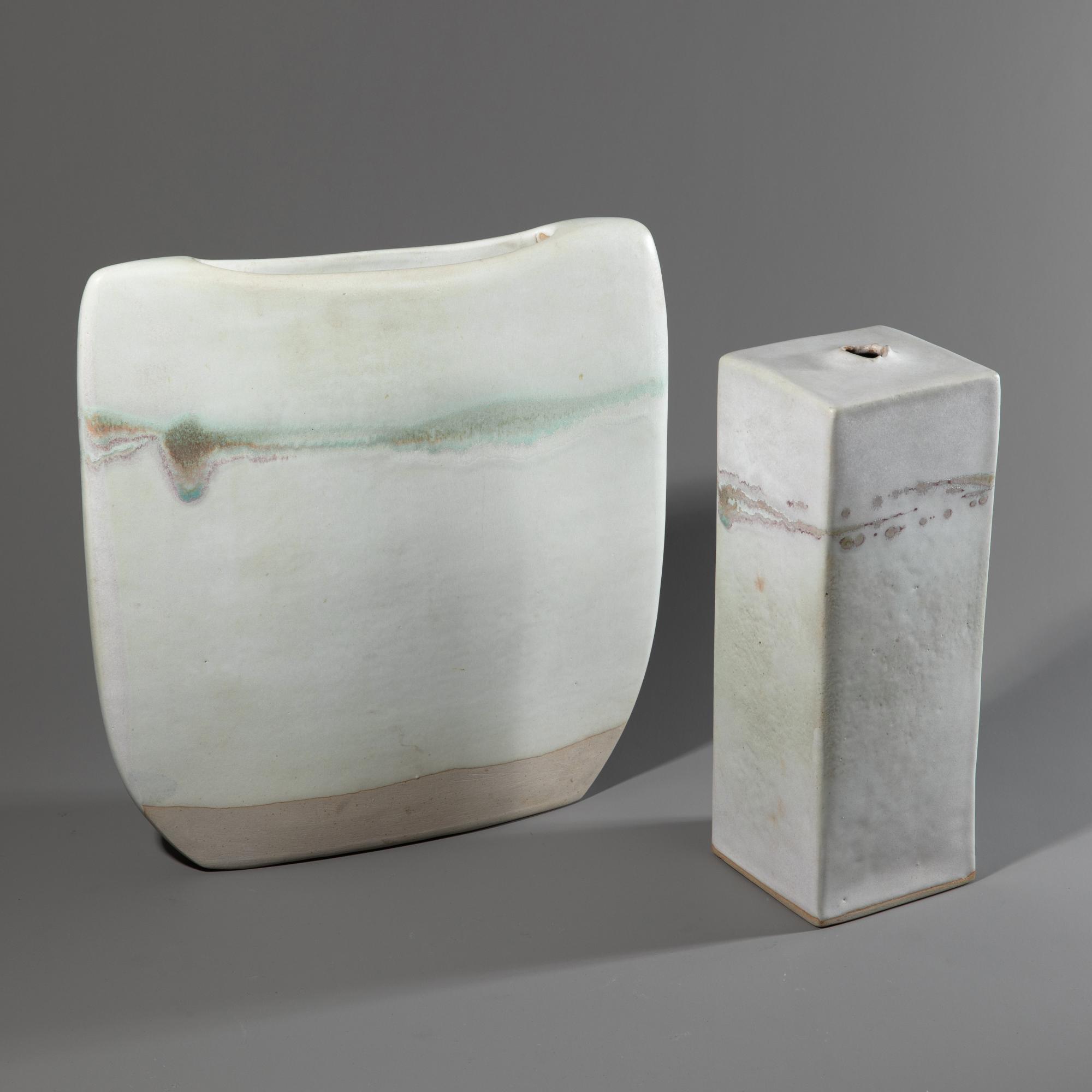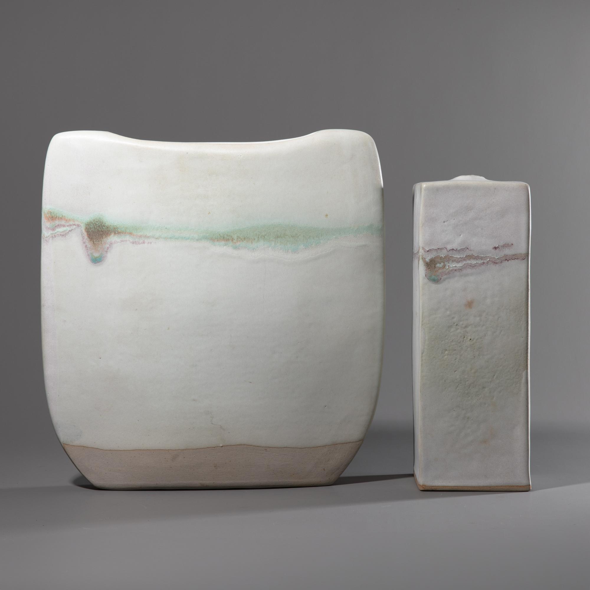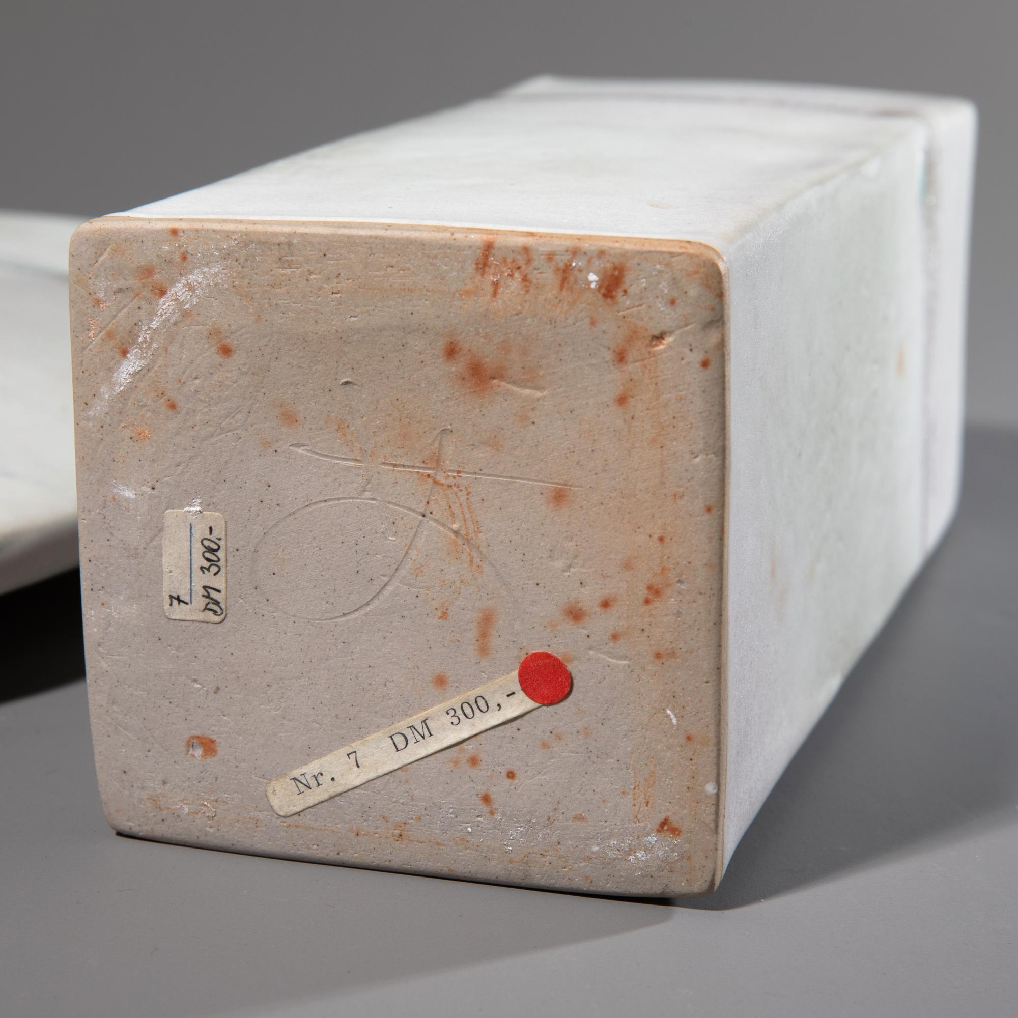 Keramik, glasiert. 25,5 x 9 x 9 cm / 30,5 x 29 x 5,5 cm. Jeweils unterseitig bezeichnet mit Künstlersignet (geritzt).