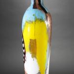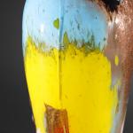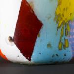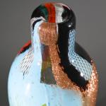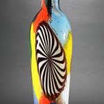 Um 1950. Aureliano Toso. Farbloses Glas mit polychromen Einschmelzungen aus Zanfirico- Glasstäben, opaken Kröseln in Rot, Weiss, Gelb, Hellblau, Schwarzviolett und Aventurin sowie einer großen schwarz-weissen Sternmurrine. H. 42 cm.