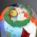 Senkrecht verlaufender Spannungsriss (ca. 30 cm) und Lochbohrung (ca. 1 cm) für Elektrifizierung als Lampenfuß.