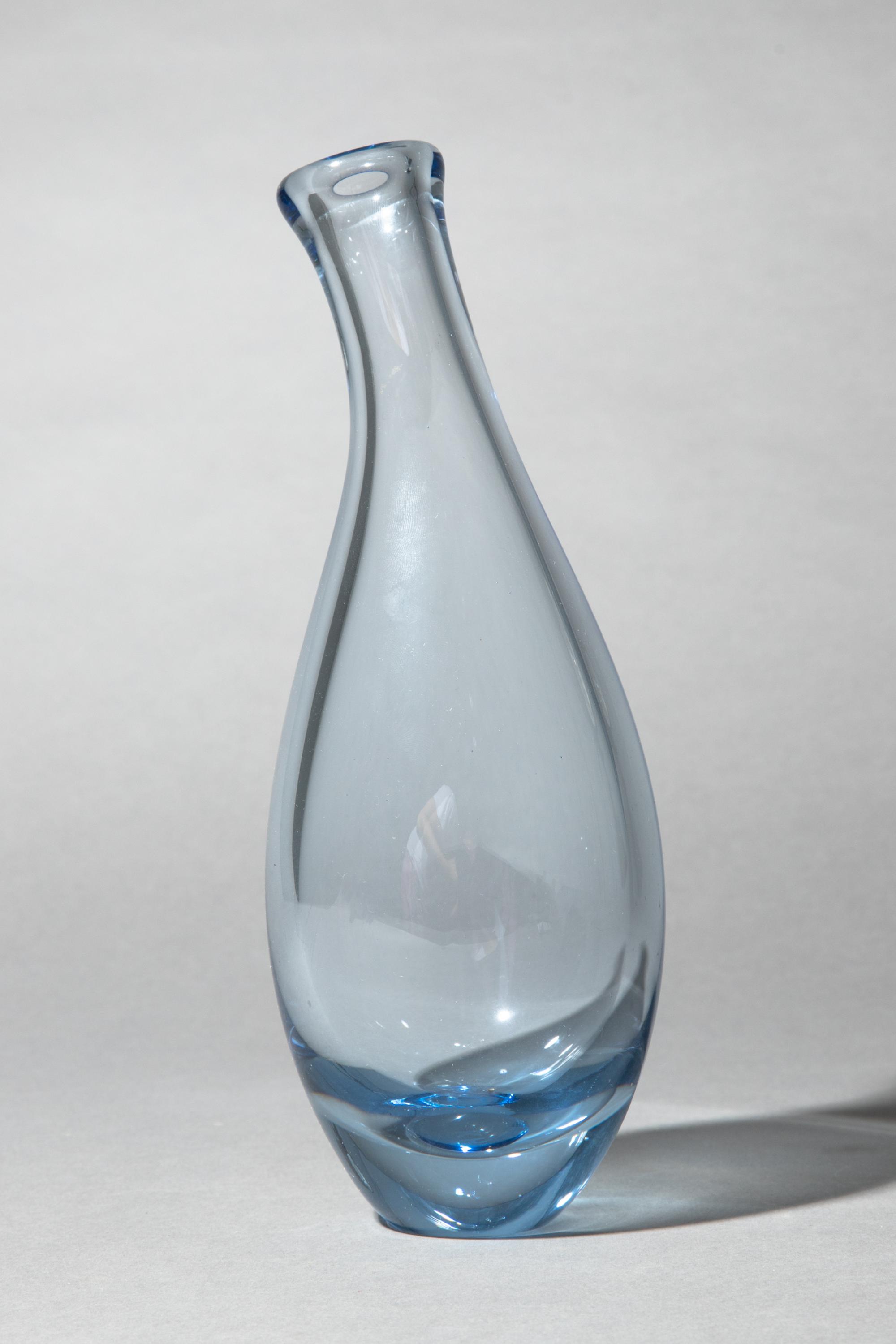 Vase aus farblosem Glas. 1960er Jahre. H. 26 cm. Am Boden mit Werkstattmarke bezeichnet (graviert, Ätzstempel).