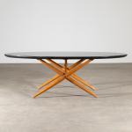 Entwurf 1954. Ausführung Asko. Holz, Platte schwarz lackiert, Metall, Messing. 40 x 120 x 60 cm.