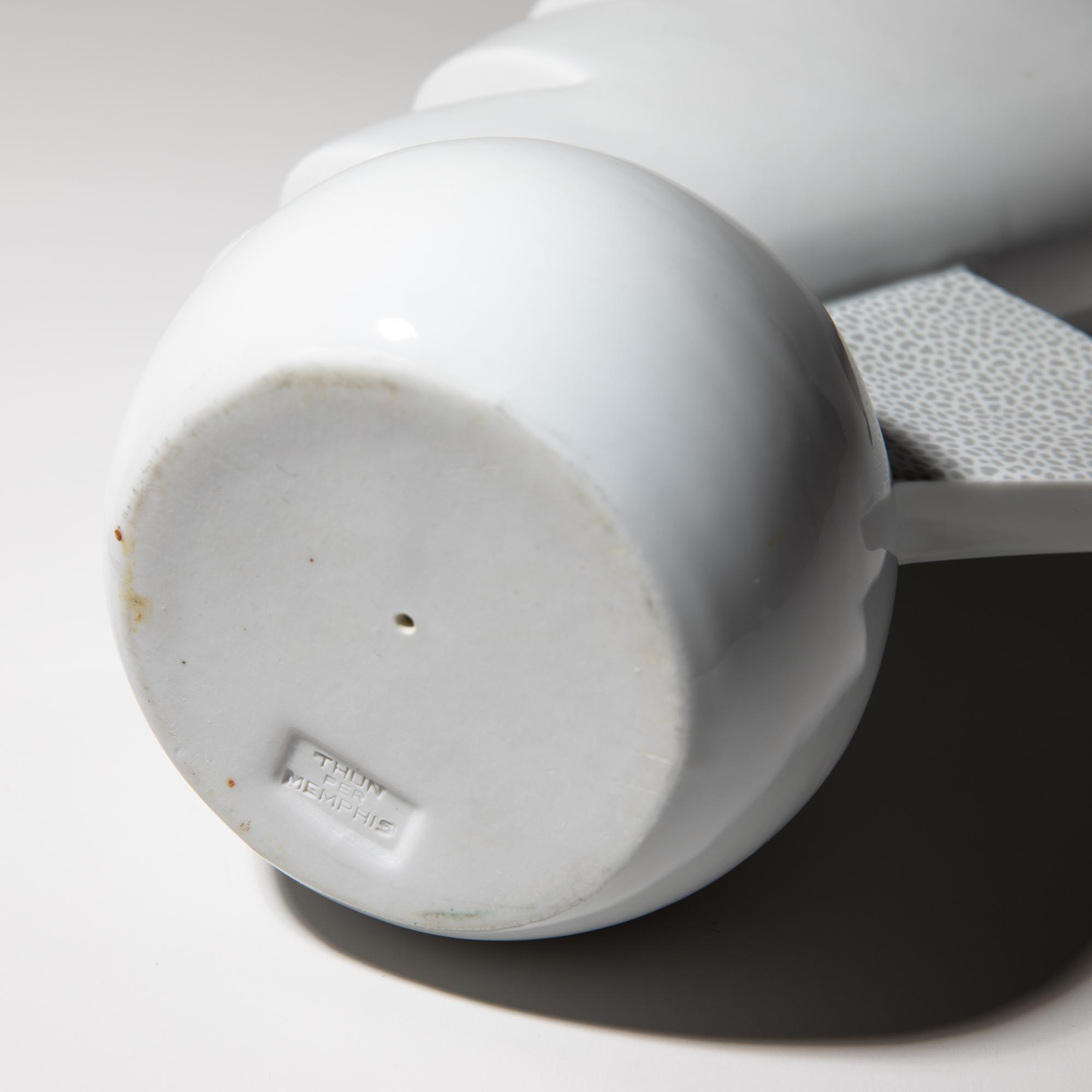 Entwurf 1982. Ausführung Memphis. Porzellan mit weißer und gemusterter Oberfläche. 27 x 18 x 11 cm. Unterseitig mit 'Thun per Memphis' bezeichnet.
