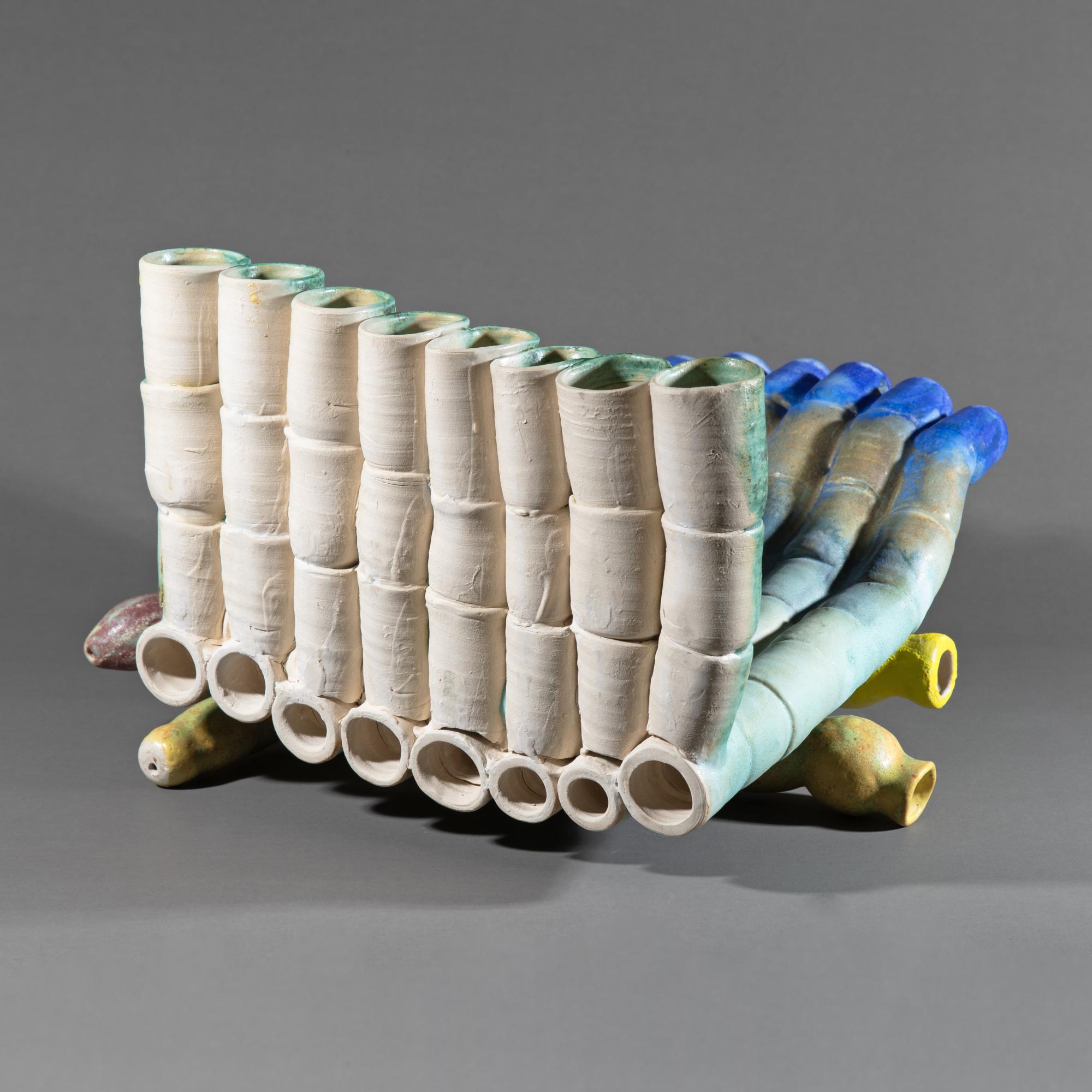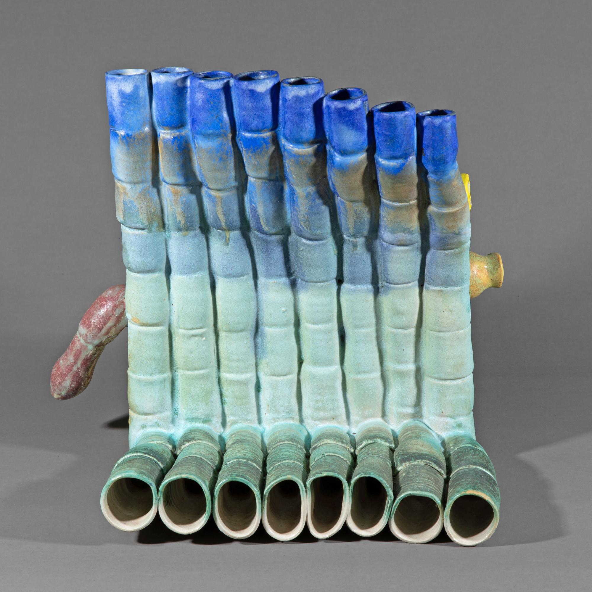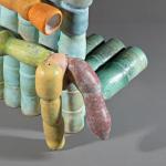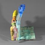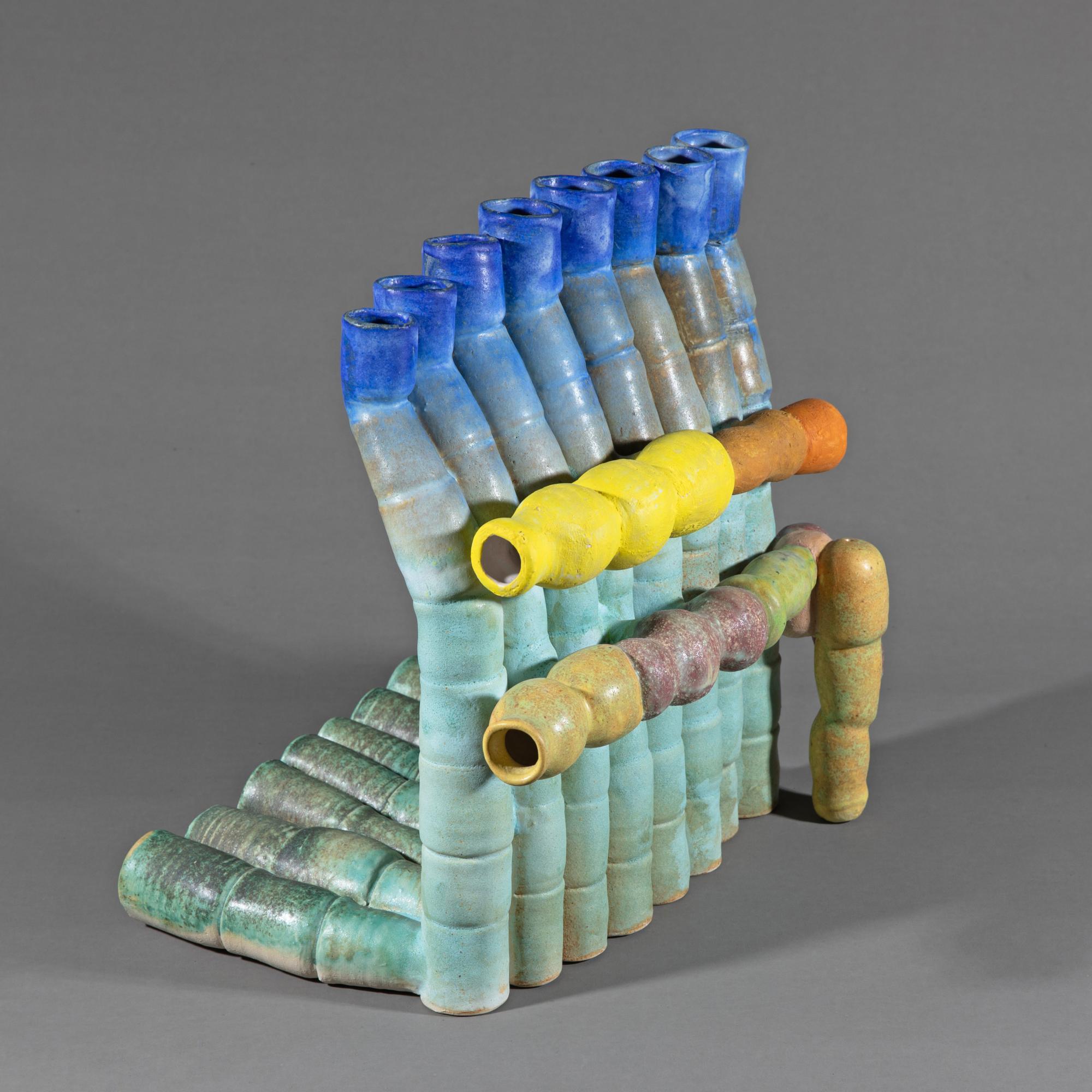 Steinzeug, polychrom matt glasiert. H. 30,5 x 35 x 21,5 cm. Nicht bez.