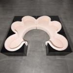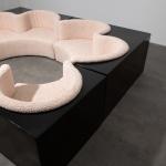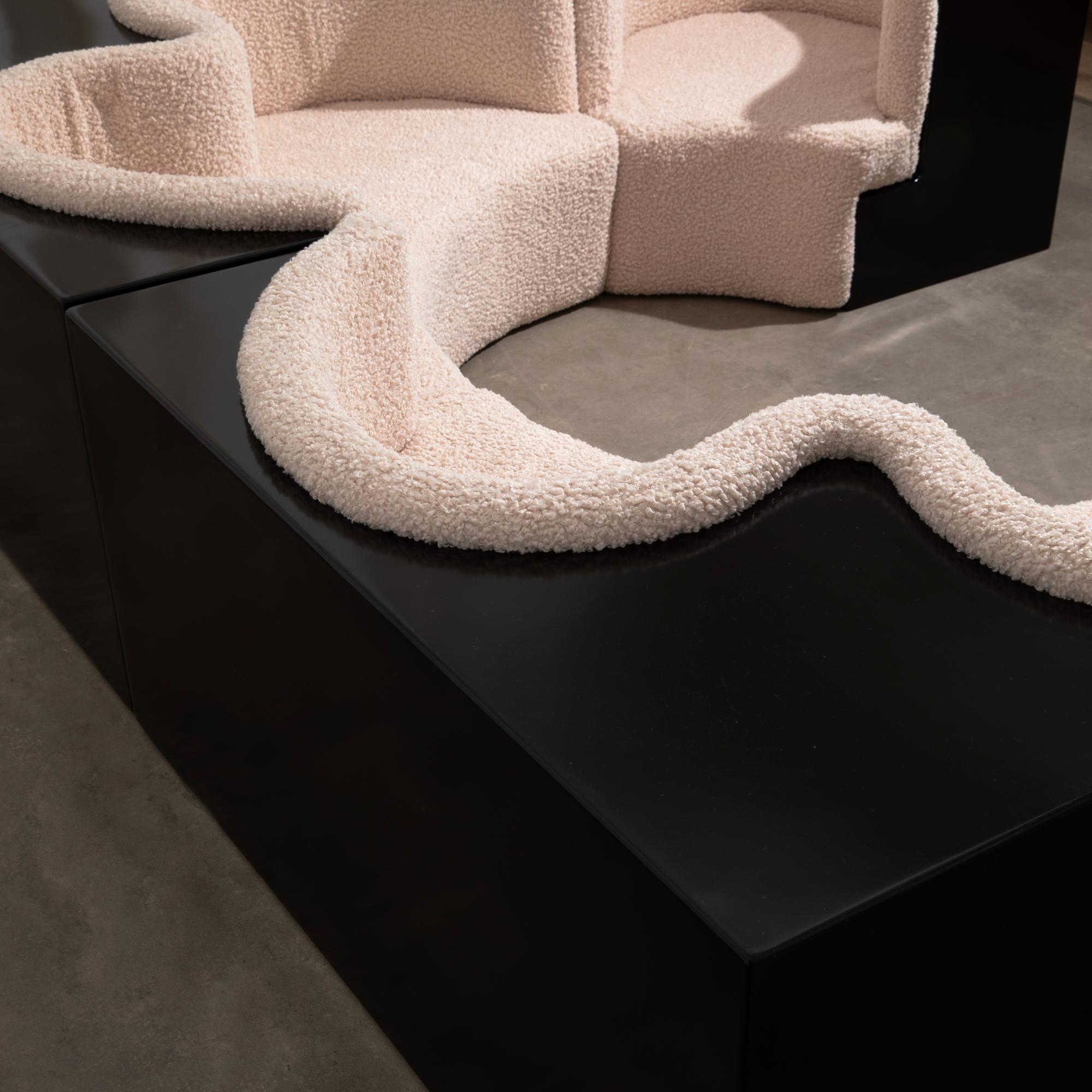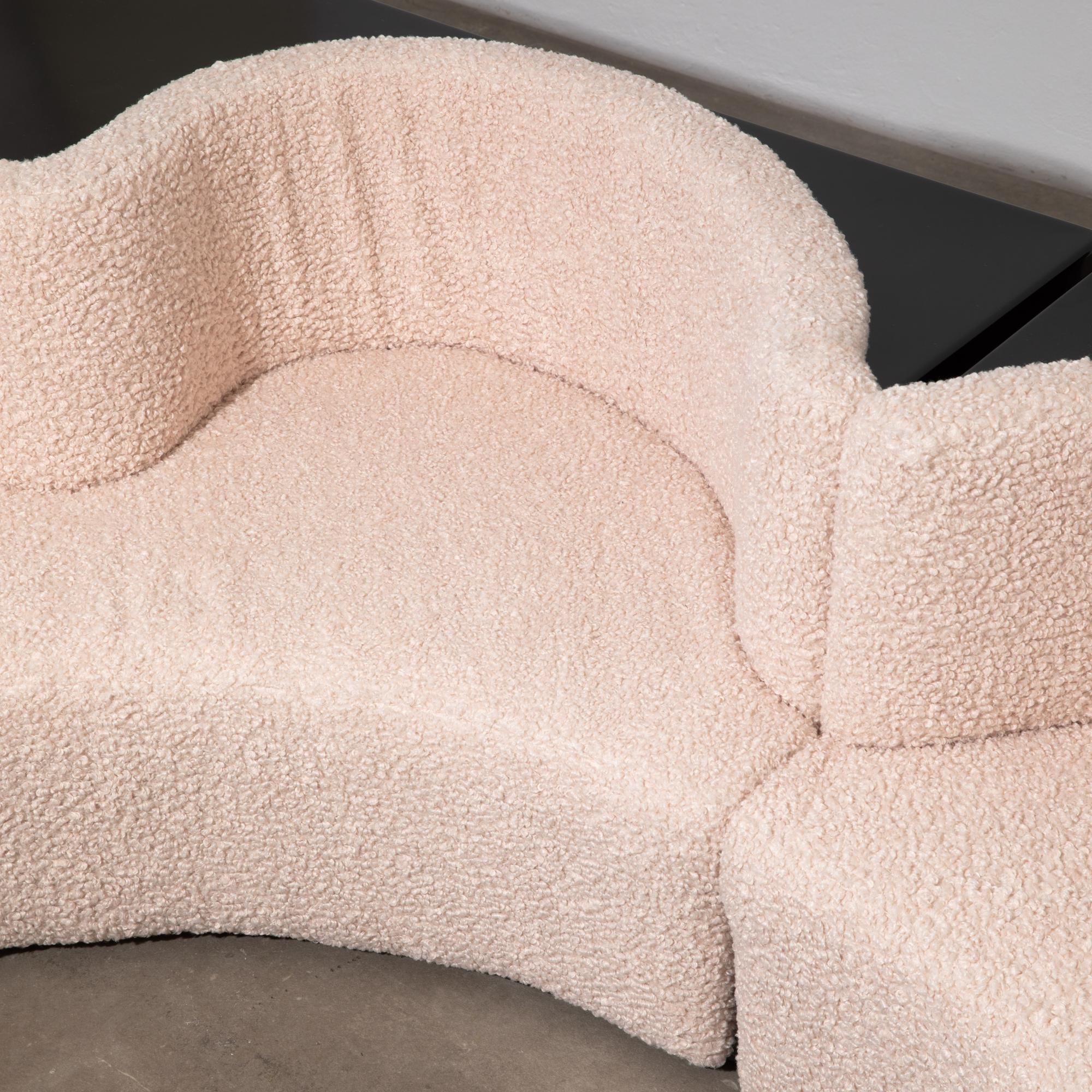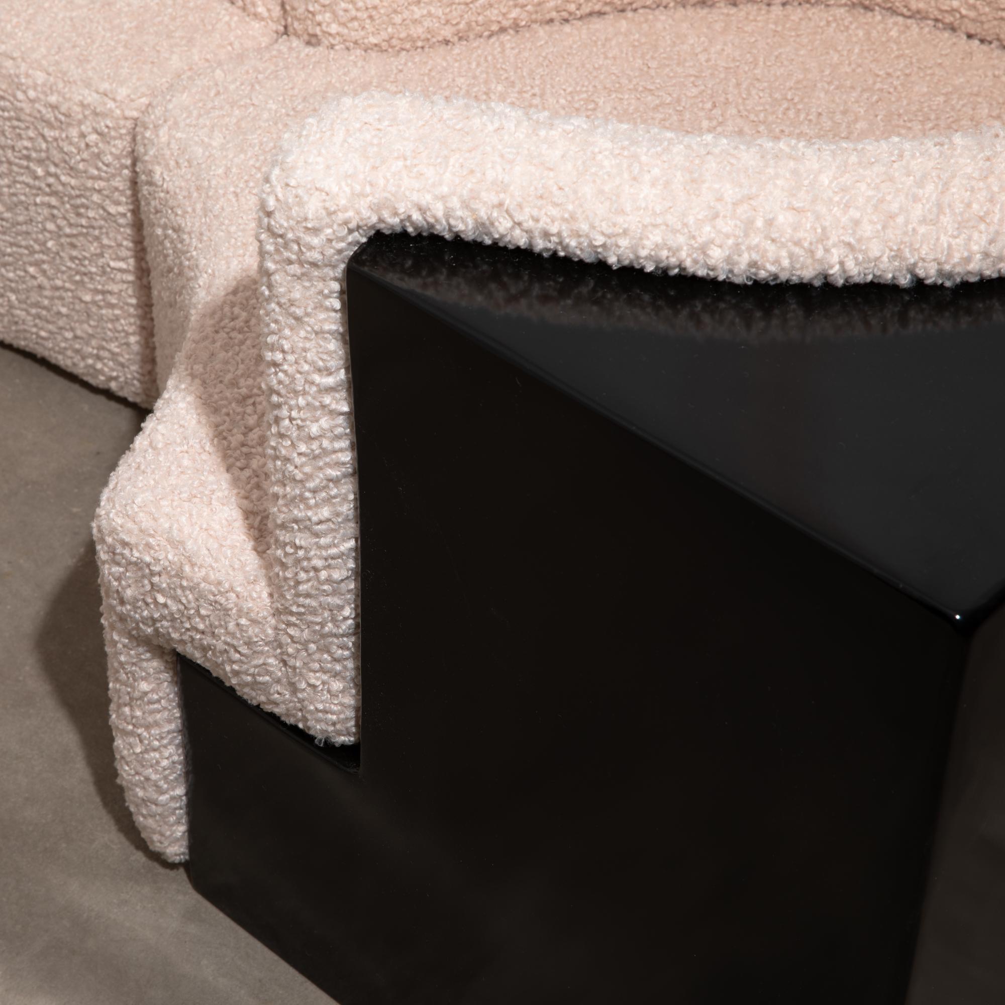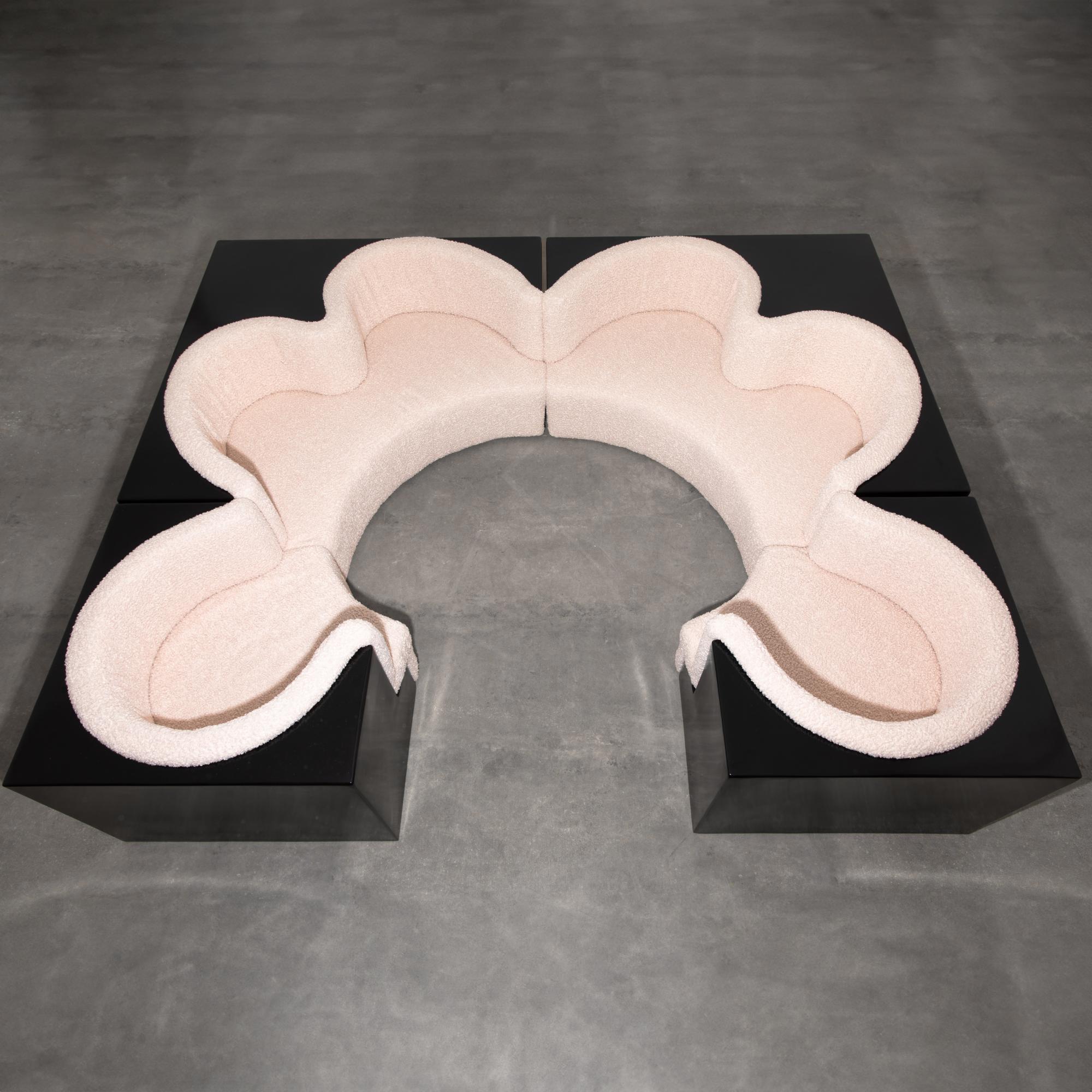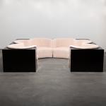 Entwurf 1967. Ausführung Poltronova, Pistoia, um 1970. Fiberglas, schwarz lackiert, cremeweisser Boucléstoff. Maße pro Element: 63 x 125 x 125 cm, SH. 33 cm.
