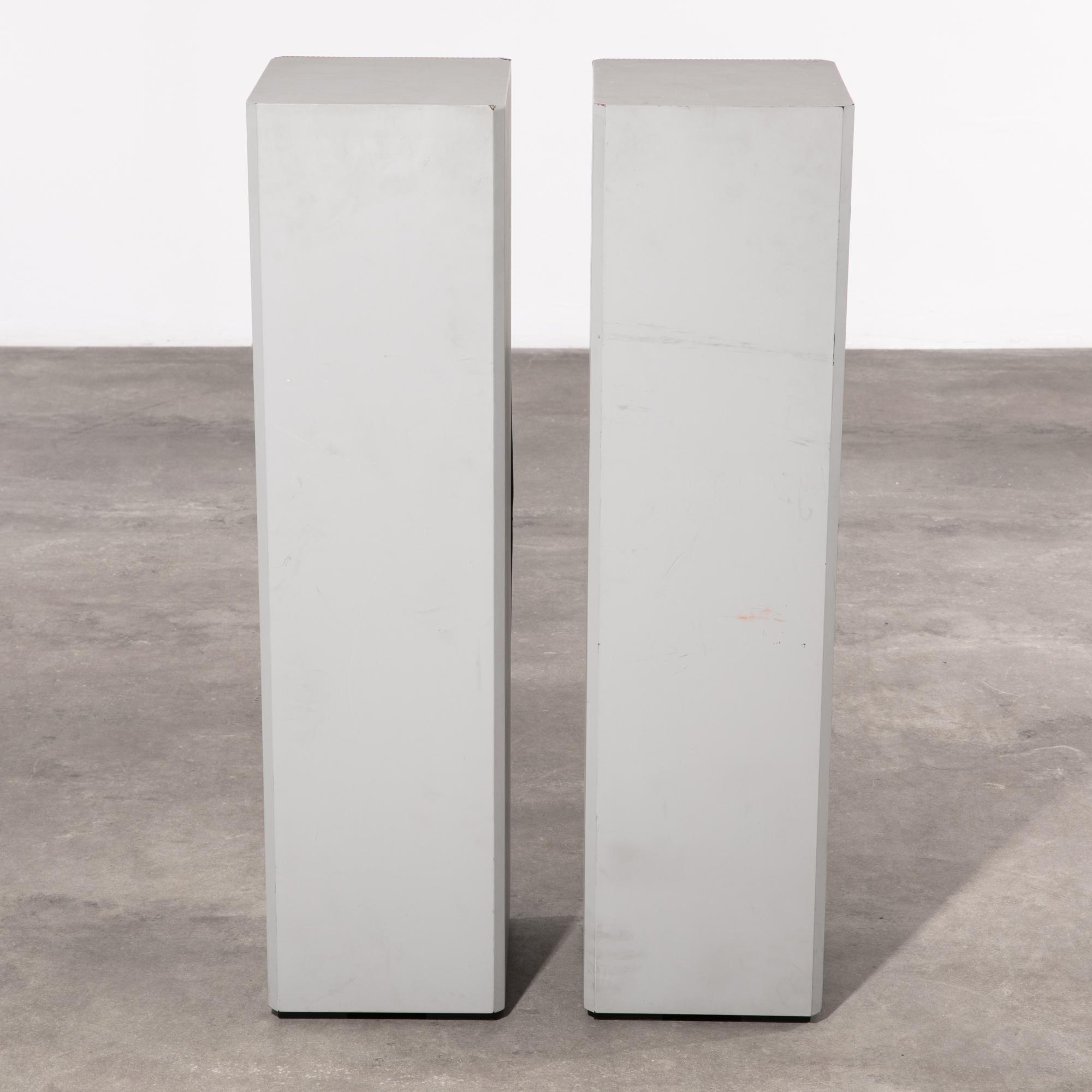 Designed in 1990, manufactured by Braun / analog und digital systeme GmbH. Light gray lacquered wood and perforated sheet metal. 93.5 x 24 x 29 cm. Marked on the underside.