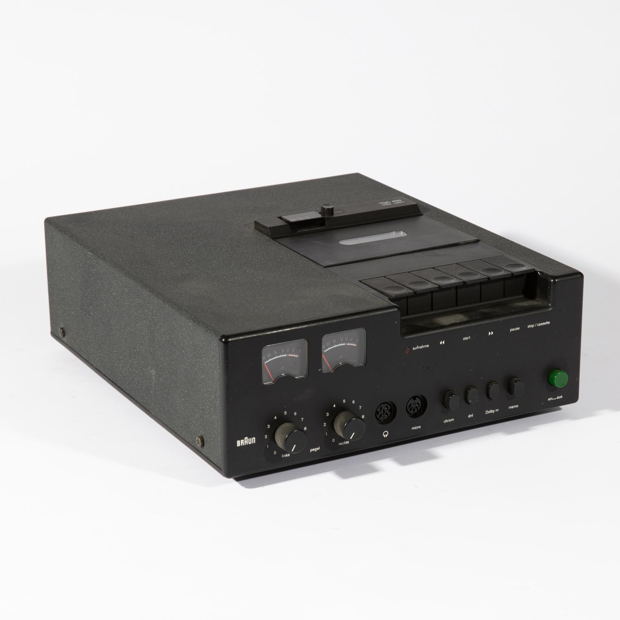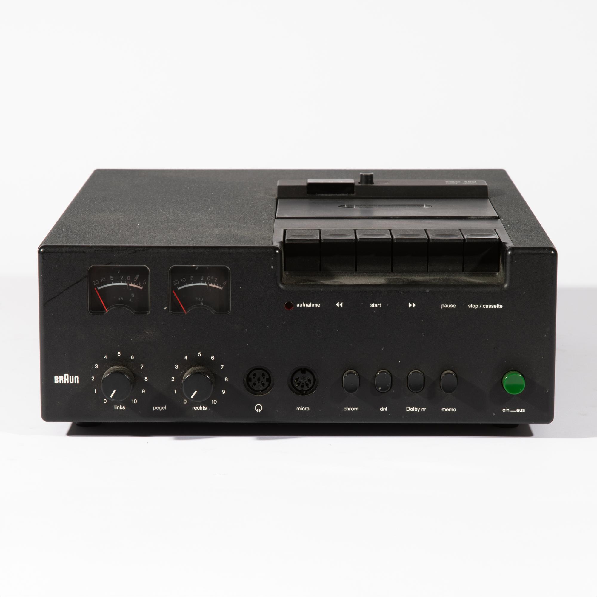 Designed in 1975. Manufactured by Braun AG. Metal with black shrink varnish finish, plastic. 11 x 28.5 x 32 cm. Marked.