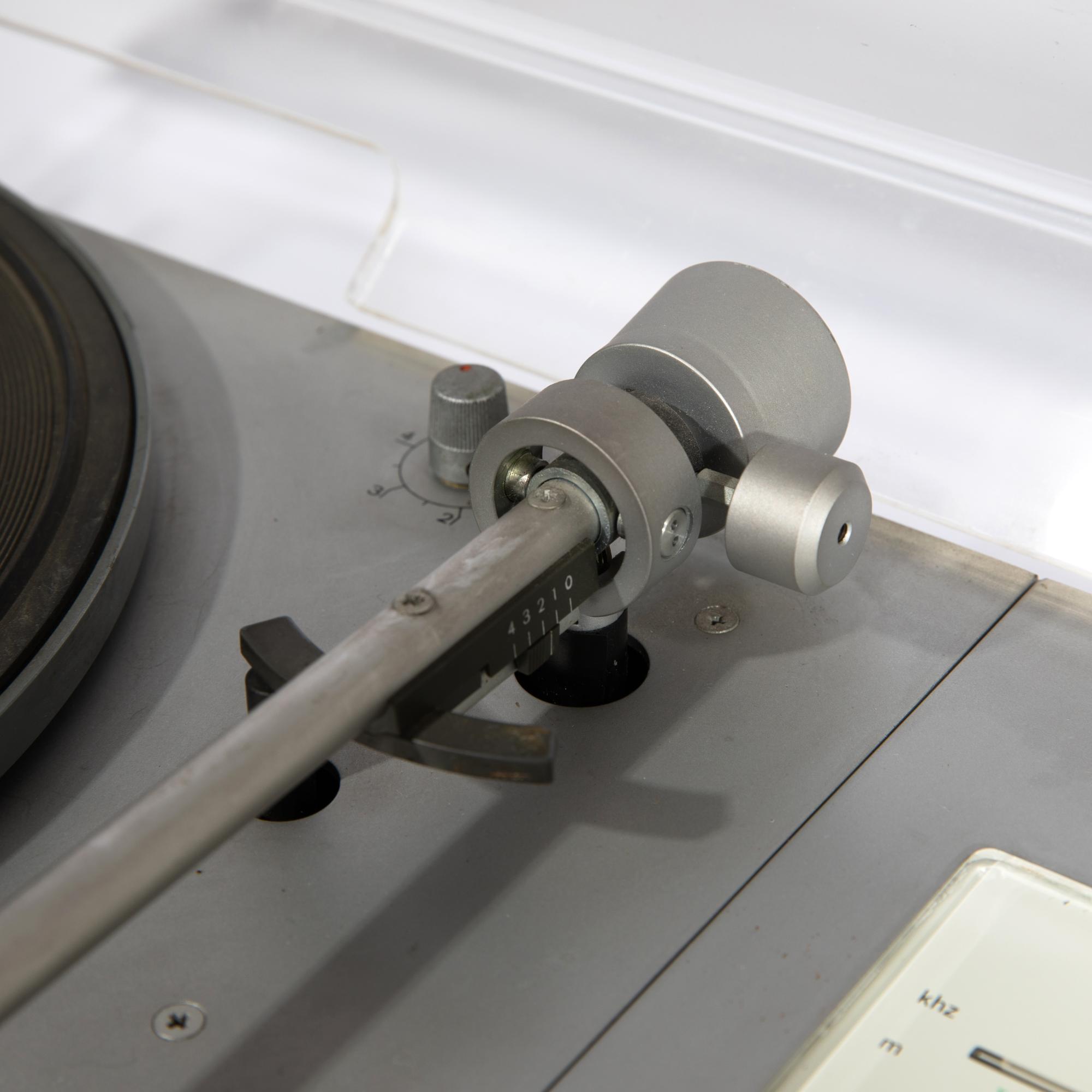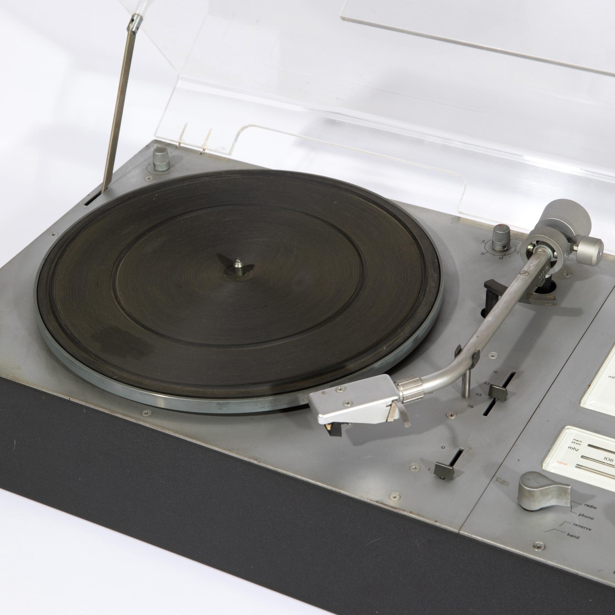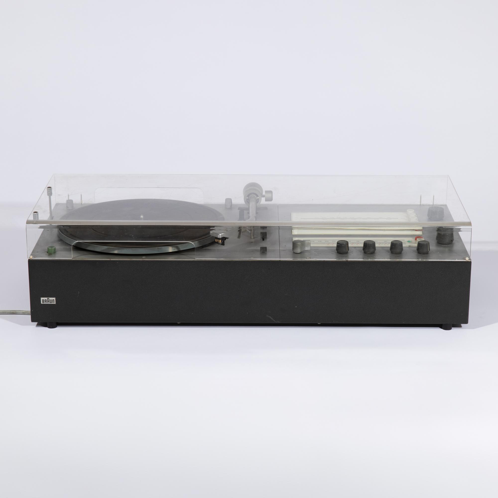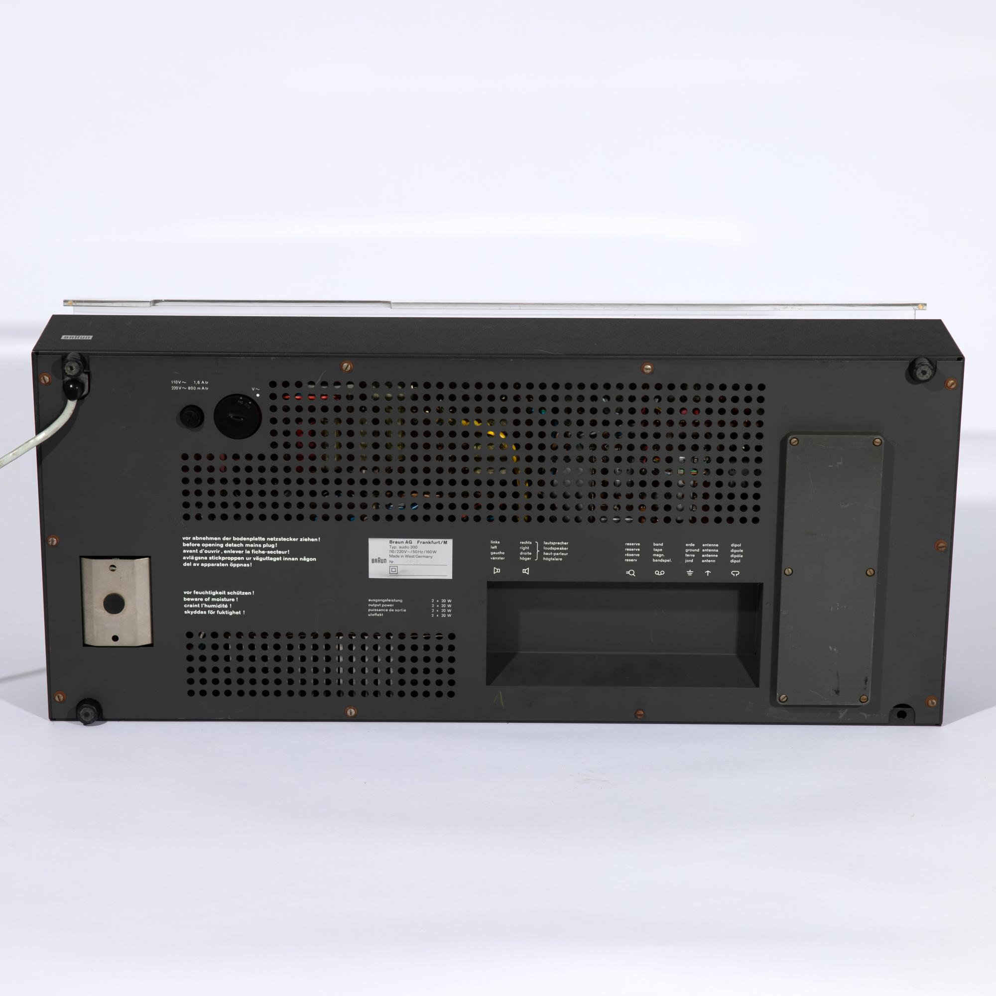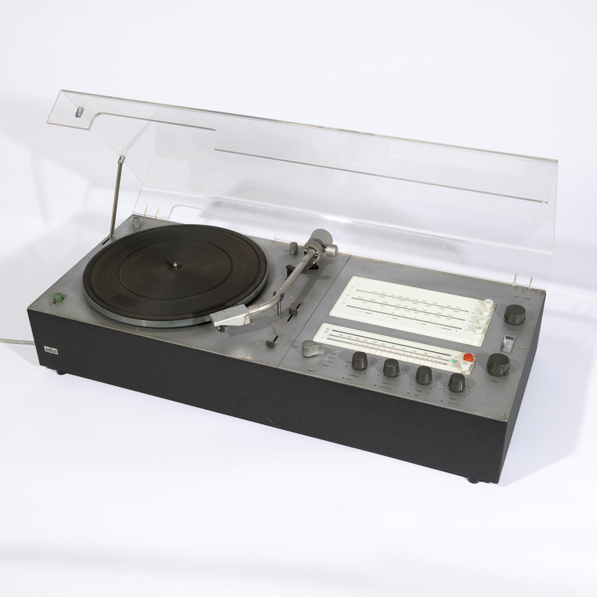 Designed in 1969. Manufactured by Braun AG. Gray lacquered metal, aluminum, and acrylic. 16.5 x 65 x 28.5 cm. Marked several times.