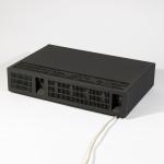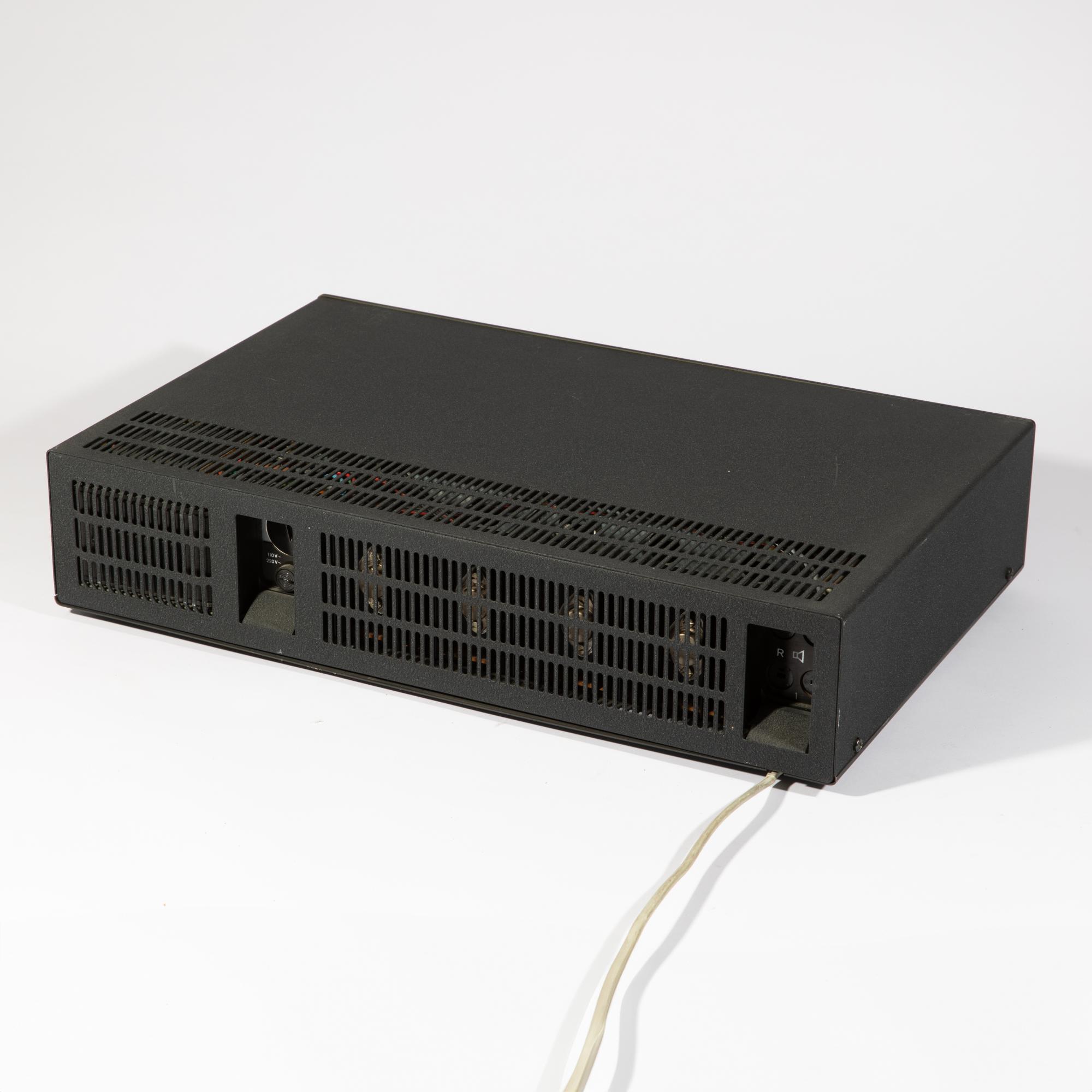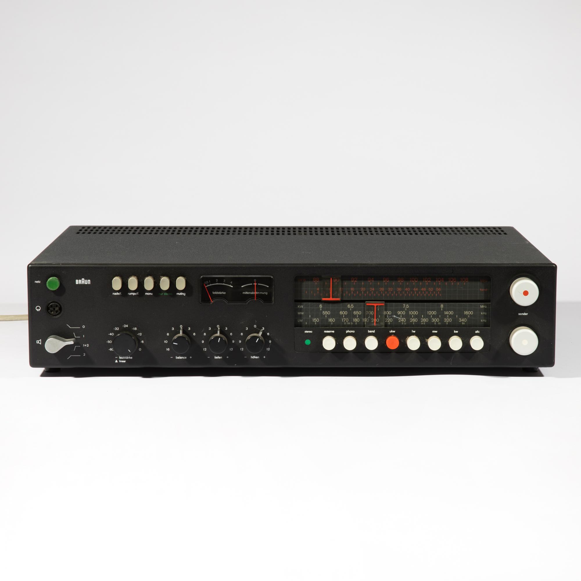 Designed in 1972. Manufactured by Braun AG. Metal with black shrink varnish finish, plastic. 11 x 50 x 32 cm. Marked.
