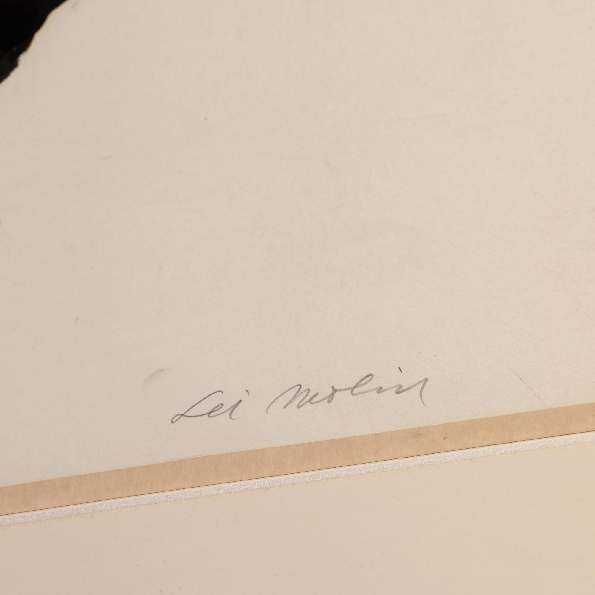 Mixed media. 135 x 105 cm. Inscribed in pencil lower left on the recto: Les Bêtes VI. Signed in pencil lower right: Lei Molin. Inscribed and dated again on the verso: 1986-87. Framed behind glass in a mat and inscribed accordingly.