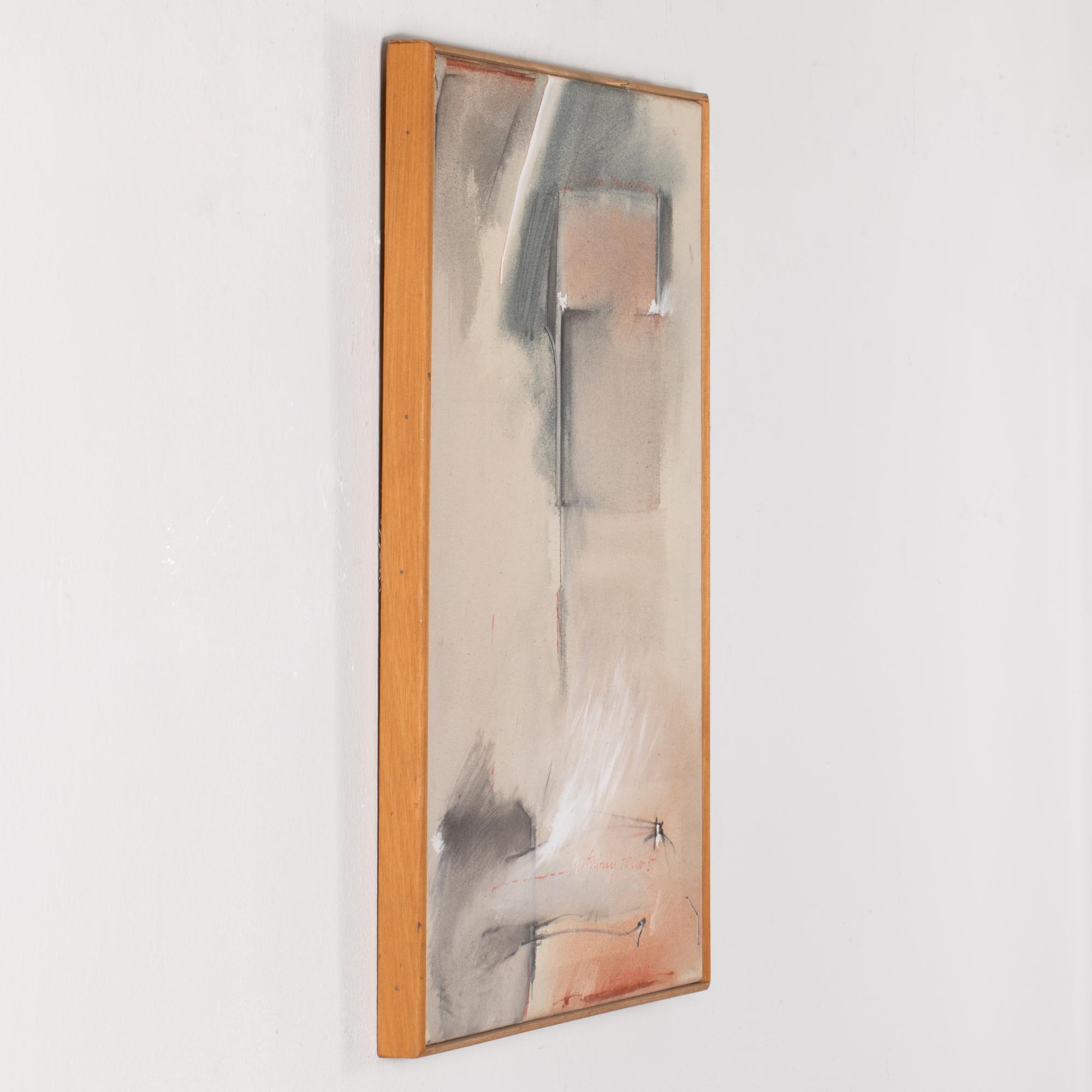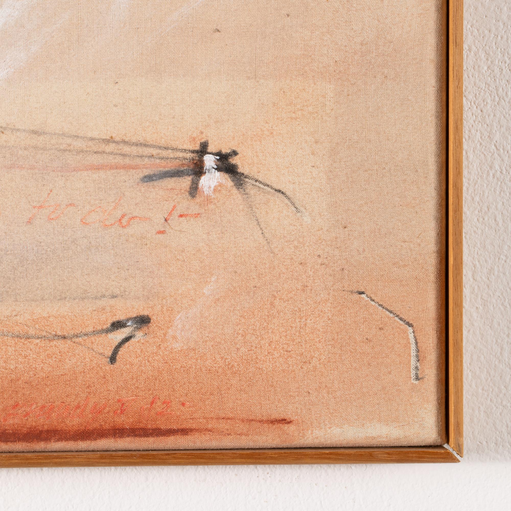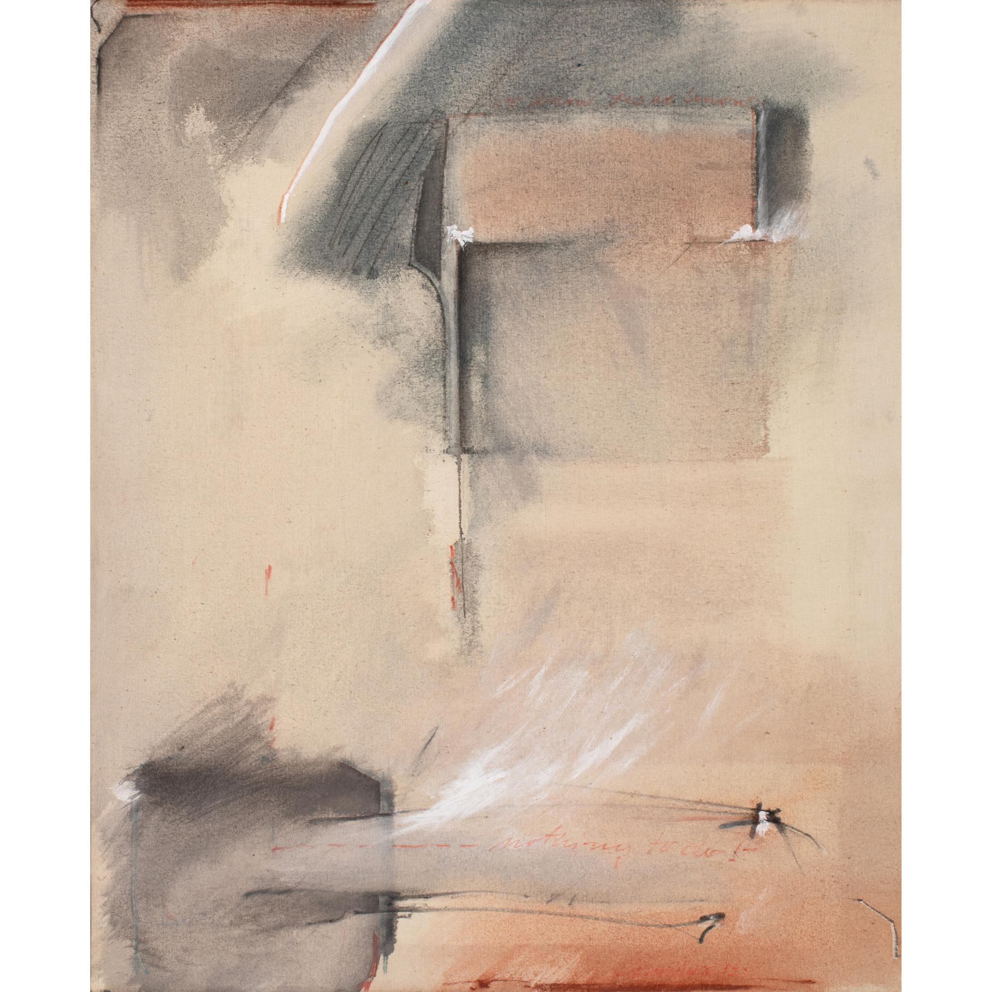 Mixed media on canvas. 60 x 50 cm. Signed lower right: Brandy V 82. Inscribed and titled on the verso of the stretcher in red pen: N83 Brandy V 82 / 'nothing to do'.