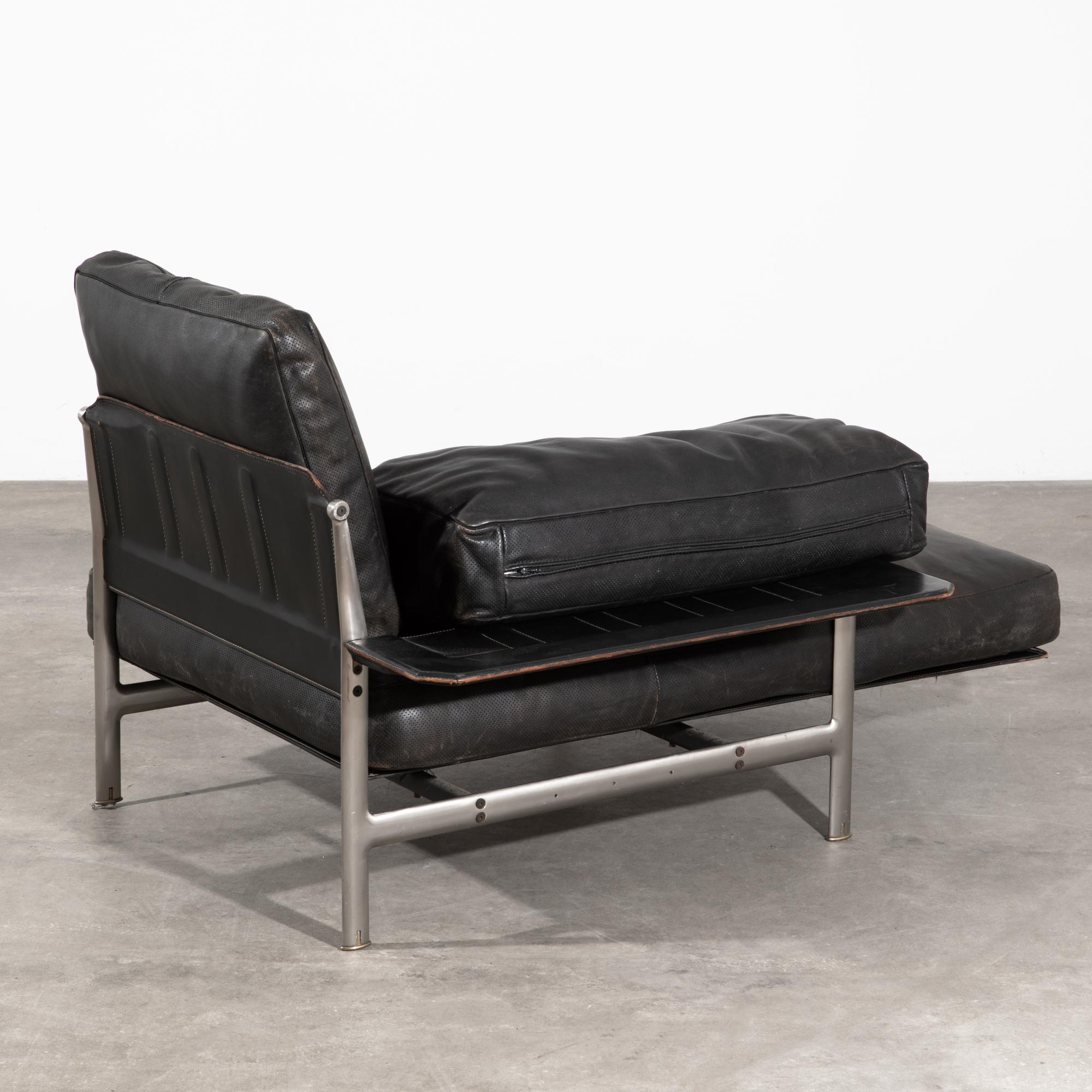 Designed in 1979. Manufactured by B&B Italia. Metal frame, black core-leather, black leather upholstery. 76 x 108 x 130 cm.