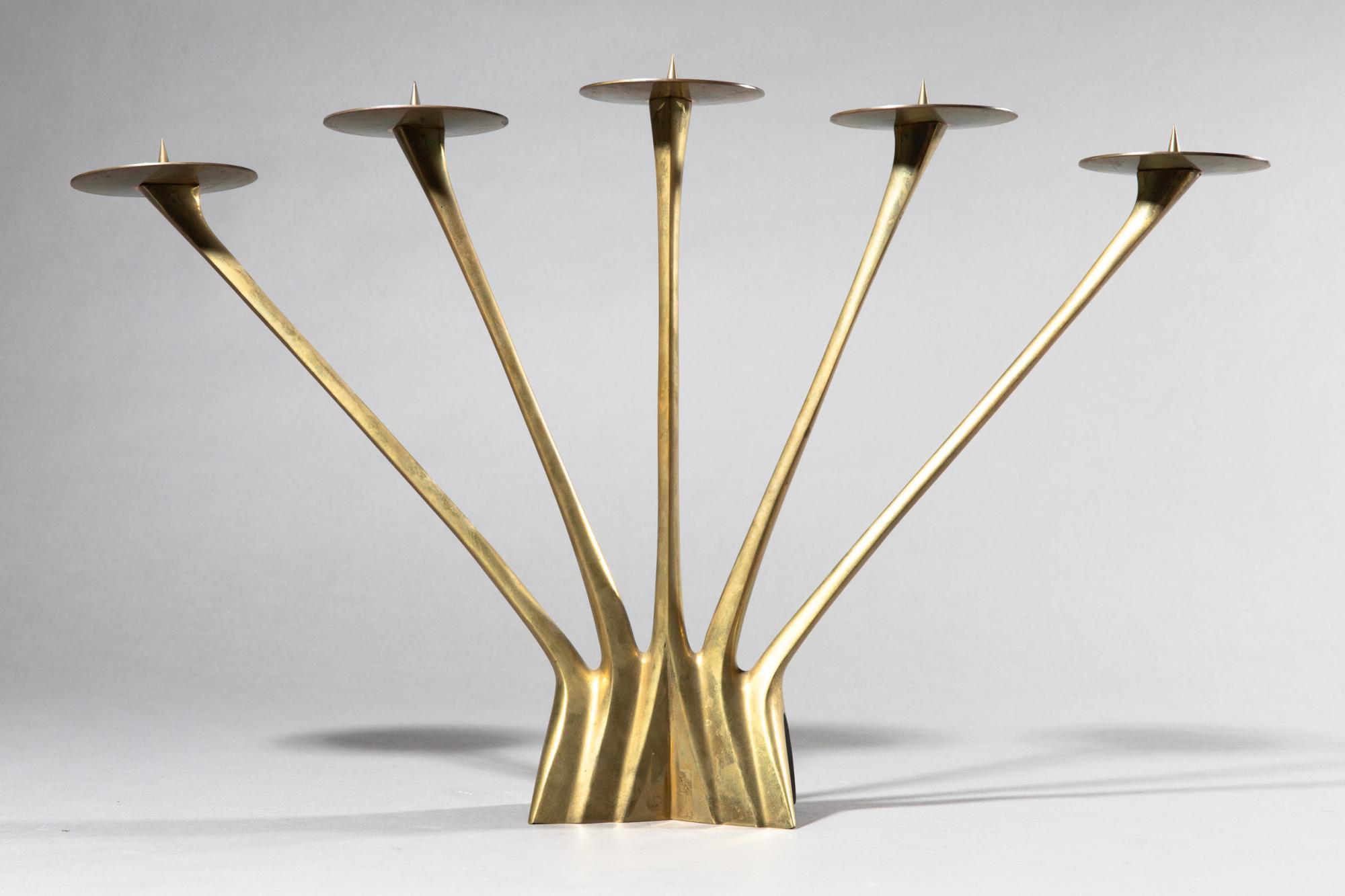 Candelabra. 1950s. Brass, partially dark patinated. 32 x 8 x 51 cm. Provenance: Otto Bantele private collection.