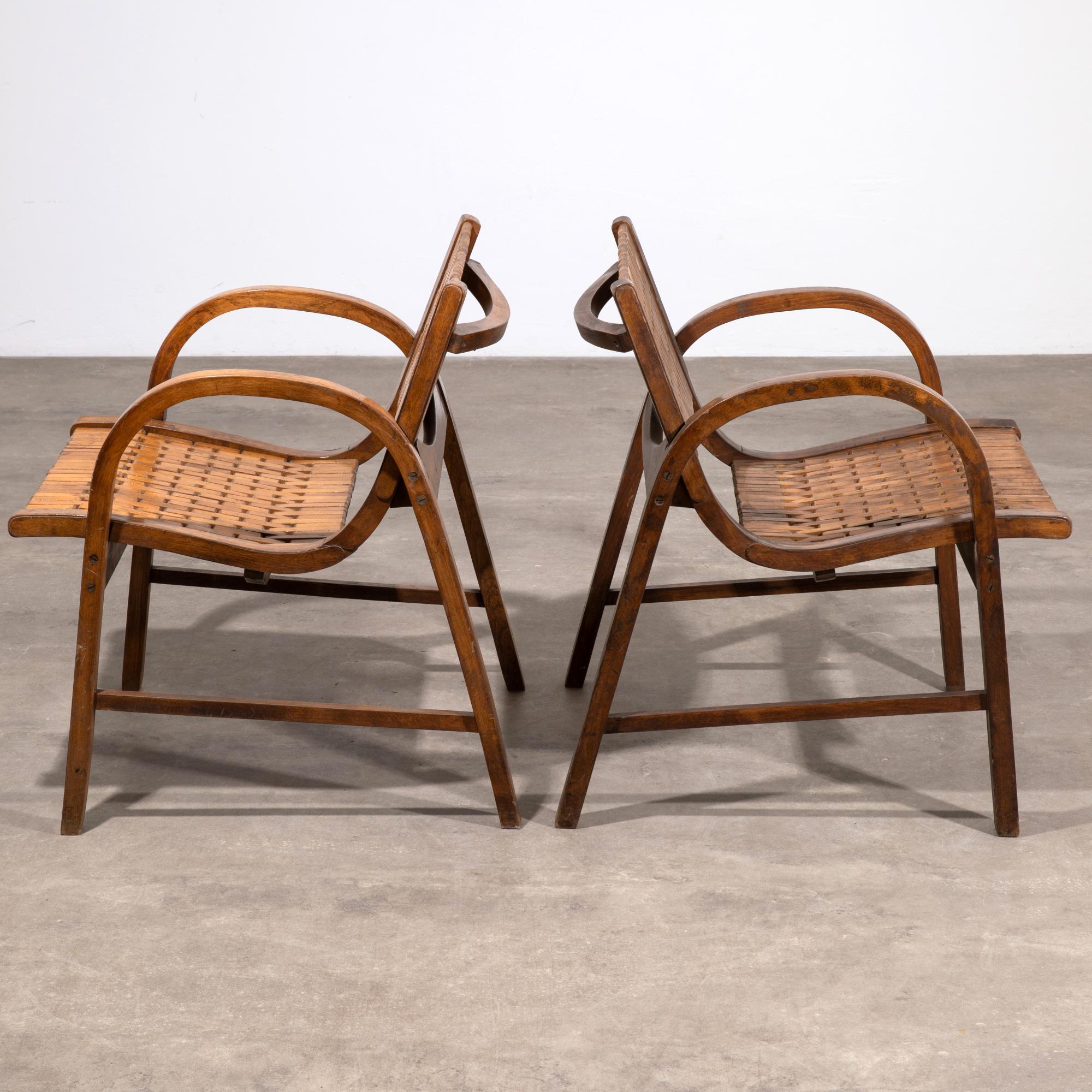 Designed and manufactured in the 1950s/60s. Construction with a wooden frame and a wooden seat and backrest supported by elastic metal springs. 77 x 58.5 x 68 cm. Marked with a brand stamp, likely from the distributor in Frankfurt am Main, Georg v. Olnhausen KG.