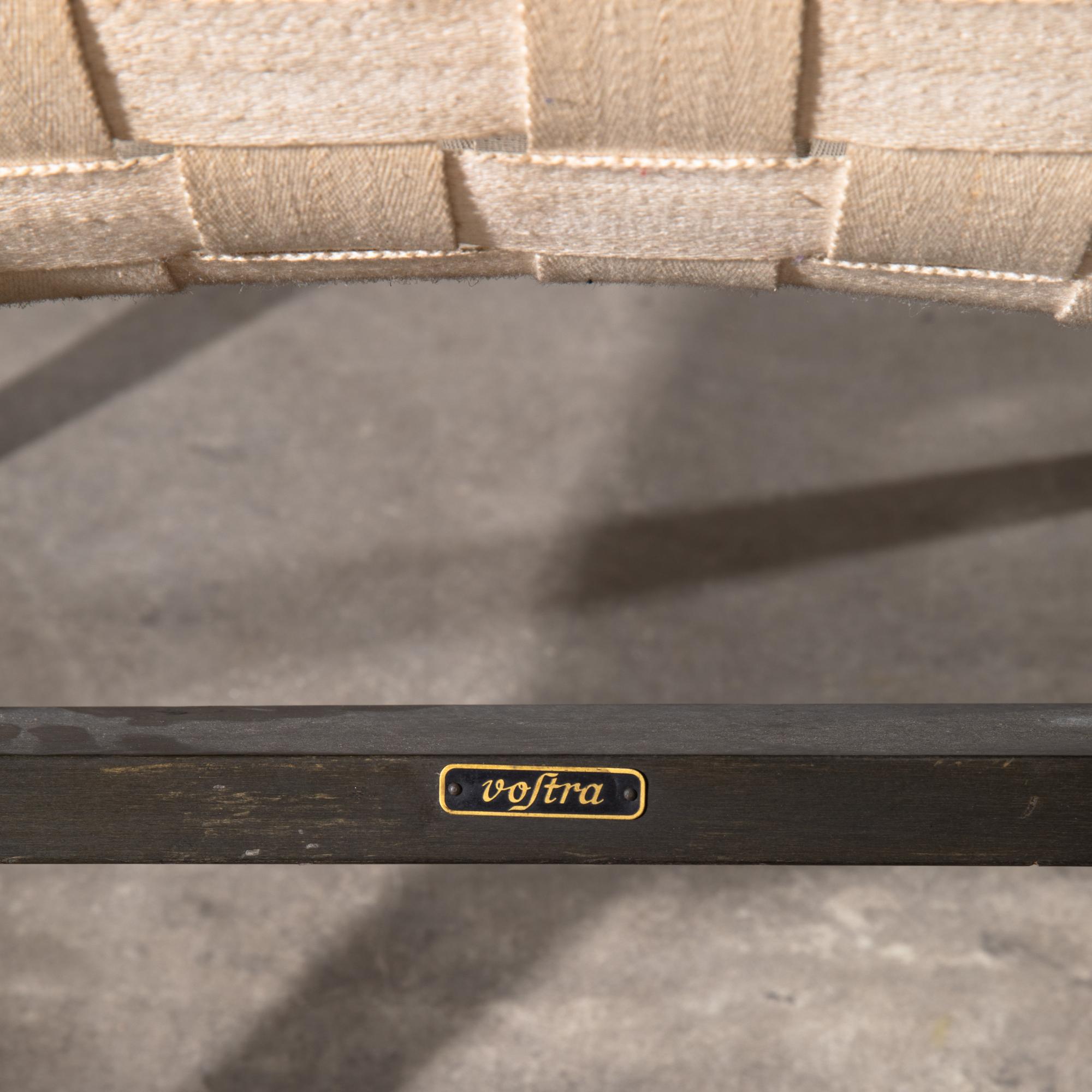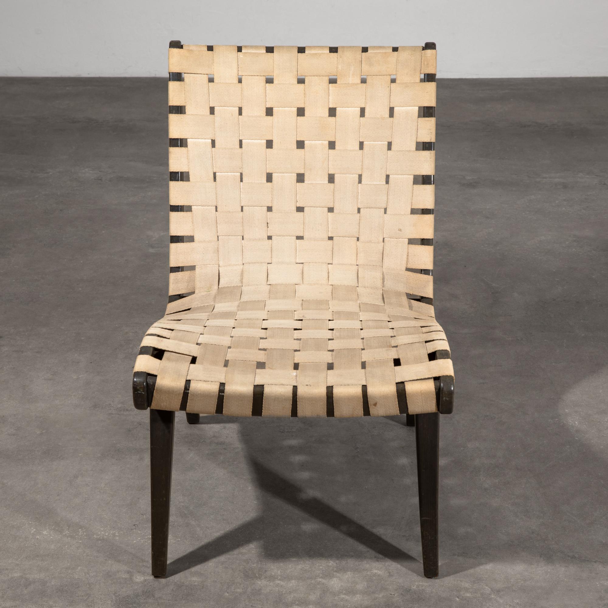 Designed in 1941/42, manufactured from 1949 onwards by Walter Knoll. Frame made of black lacquered wood, webbing made of natural white fabric. 76.5 x 50.5 x 72 cm. Marked with a metal plaque.