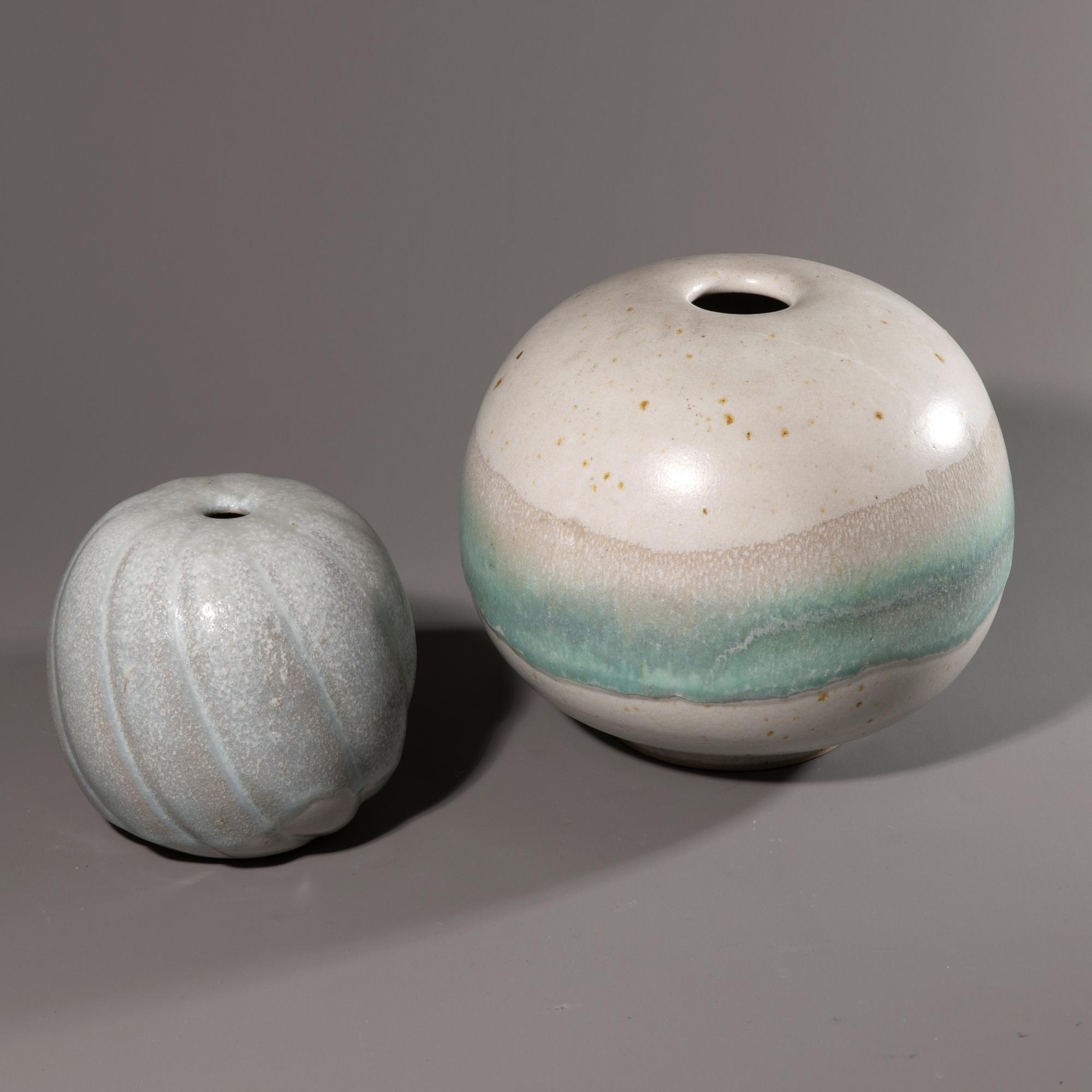 Glazed ceramic. Spherical vase body. H. 16 cm, D. 18 cm / H. 11.5 cm, D. 11.5 cm. Marked on the underside with workshop mark and signature.