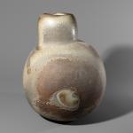 Glazed ceramic. Bulbous body with a slanted neck and slightly indented mouth. H. 33.5 cm, D. 29 cm. Marked on the underside with the artist's signature, workshop mark, adhesive label, and the date 1991.